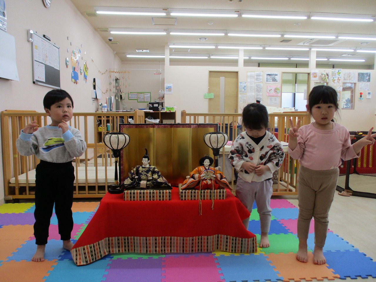 お雛様が近くにいて、少し怖がってしまうお友だちもいましたが笑 集合写真が撮れました♪