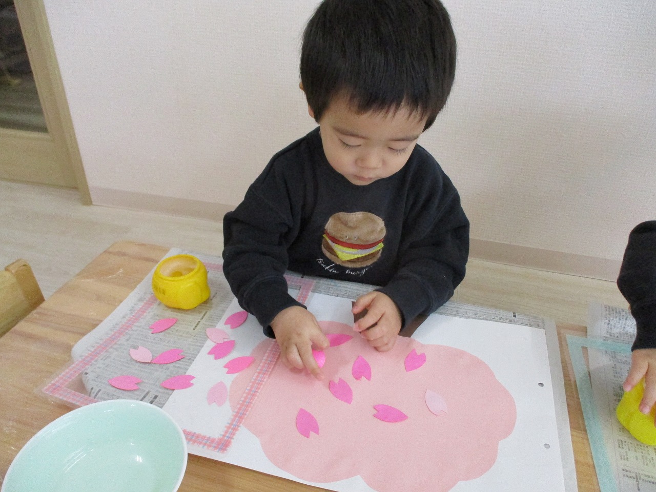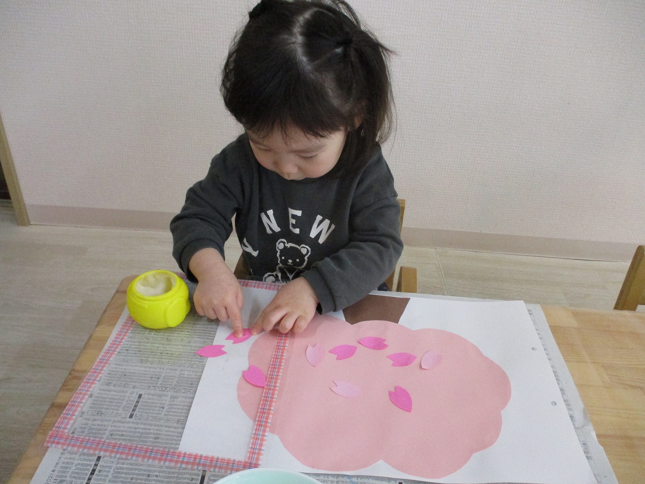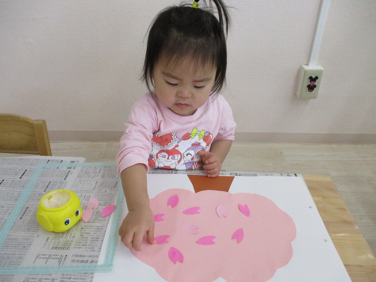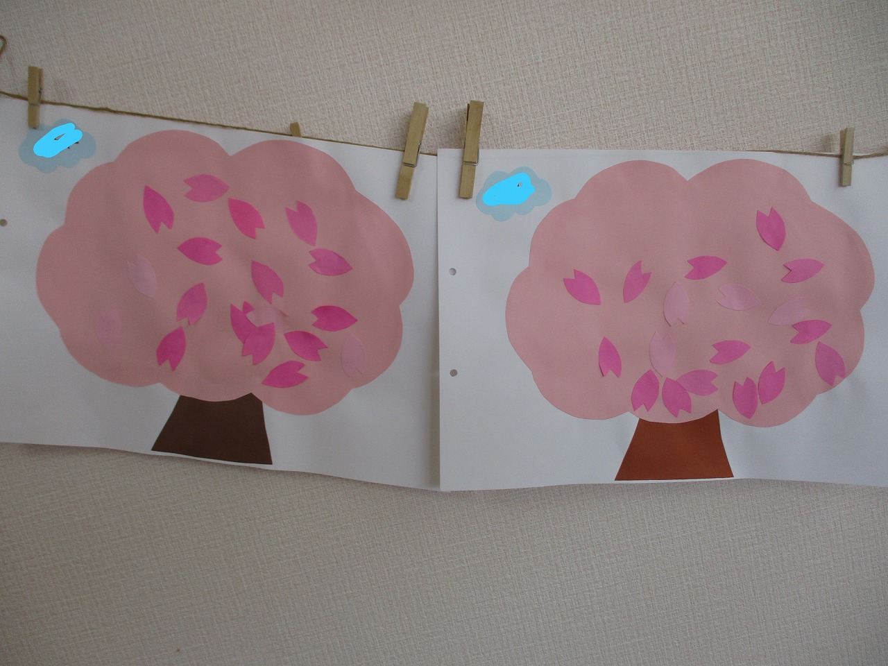 子ども達には、沢山の花びらを糊で貼ってもらい 桜の木を満開にしてもらいました🌸