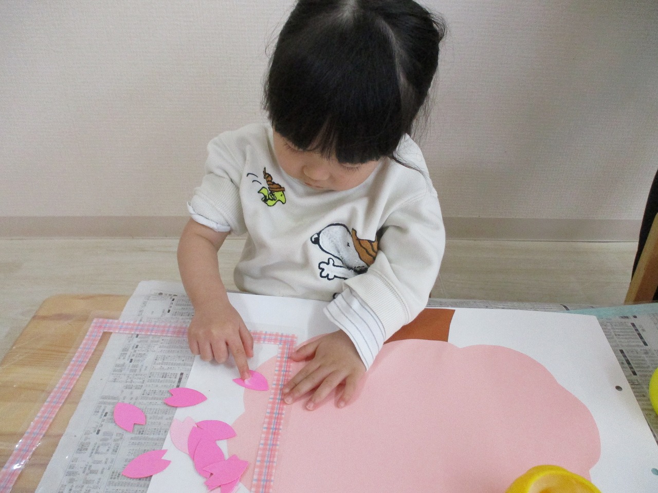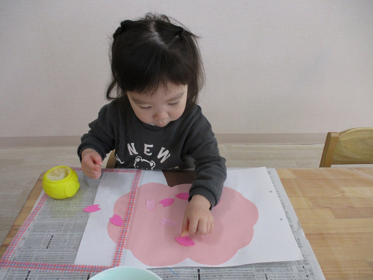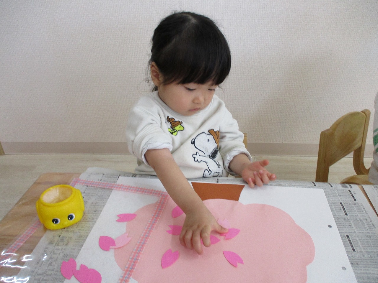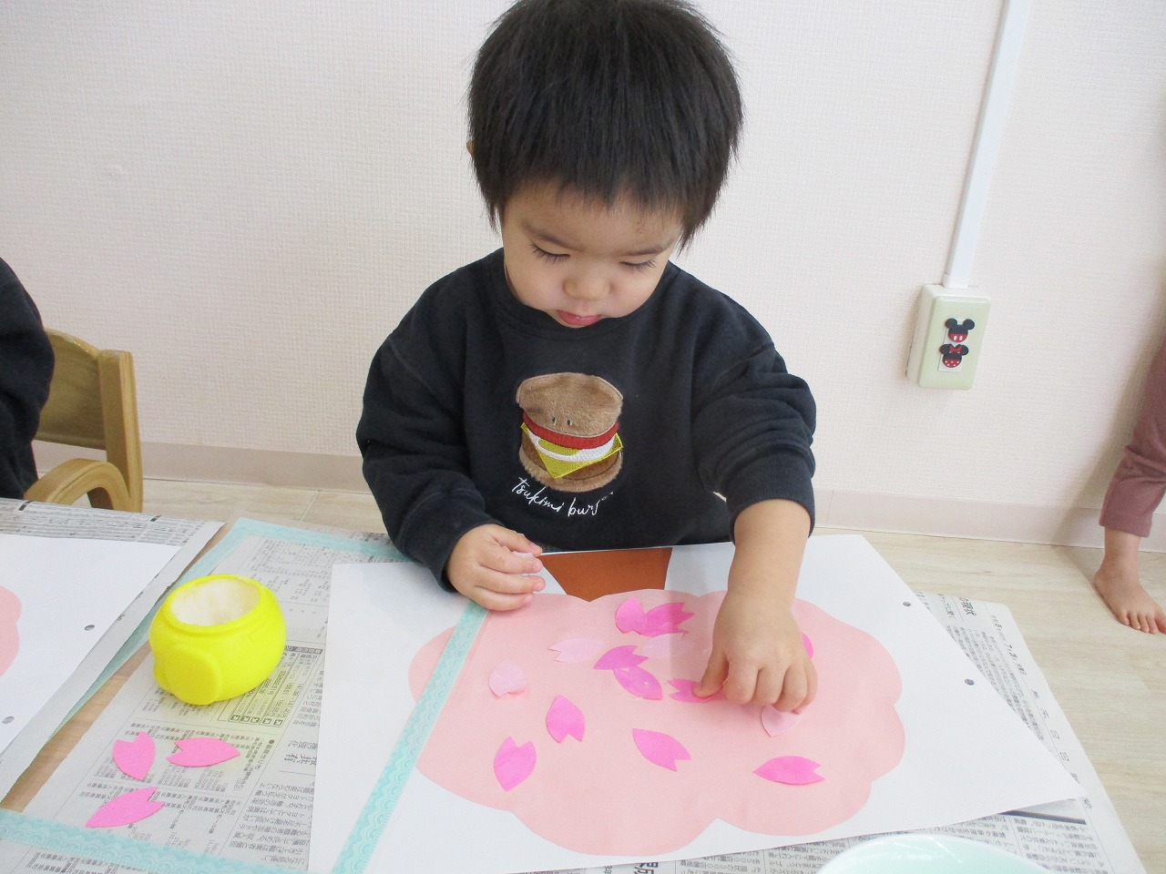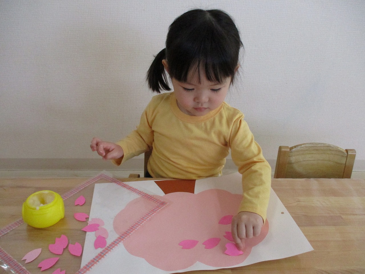 子ども達には、沢山の花びらを糊で貼ってもらい 桜の木を満開にしてもらいました🌸