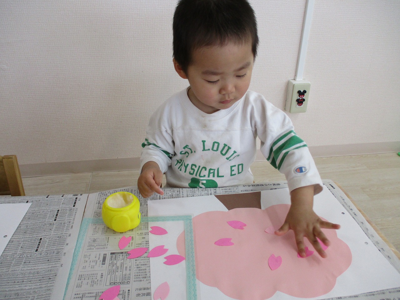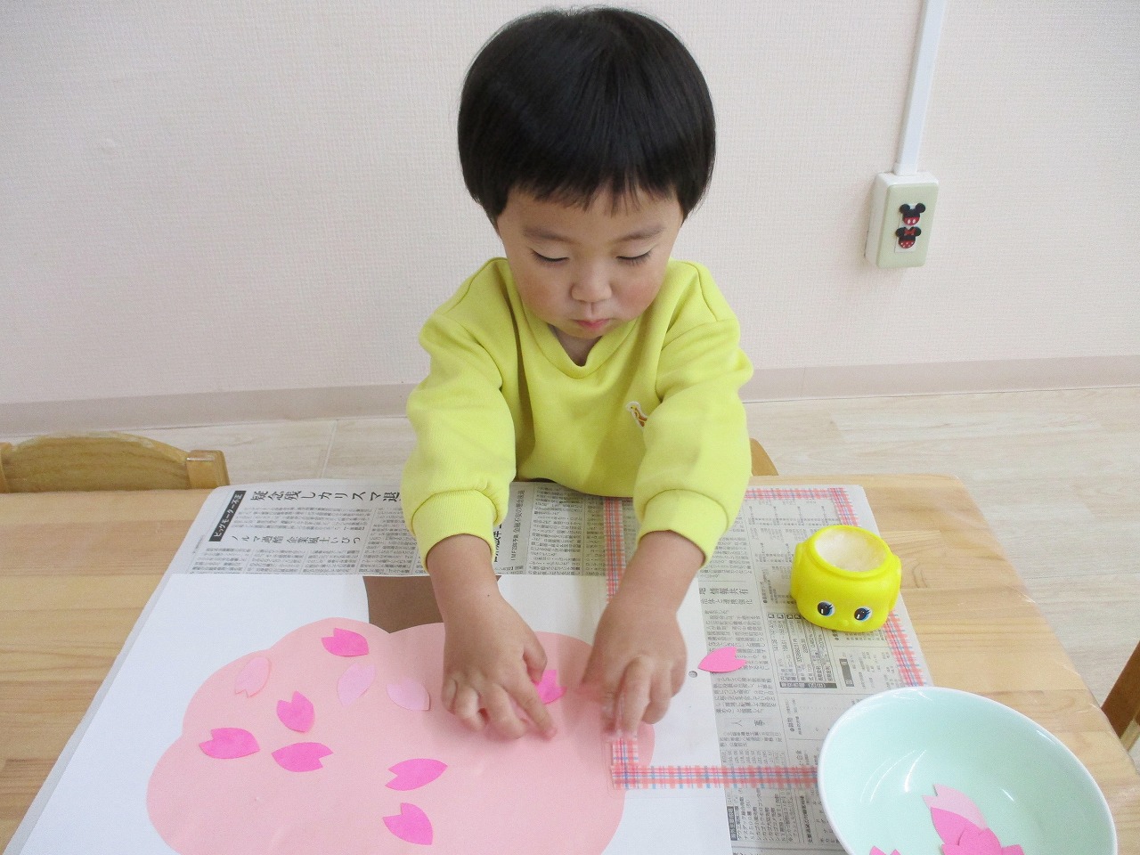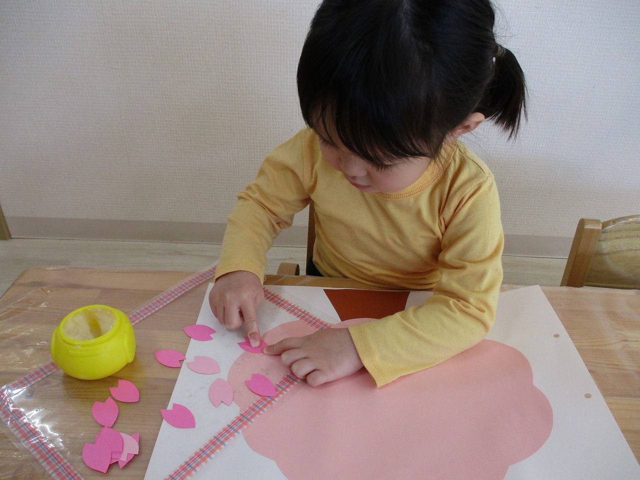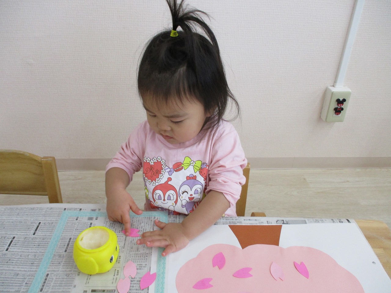 子ども達には、沢山の花びらを糊で貼ってもらい 桜の木を満開にしてもらいました🌸