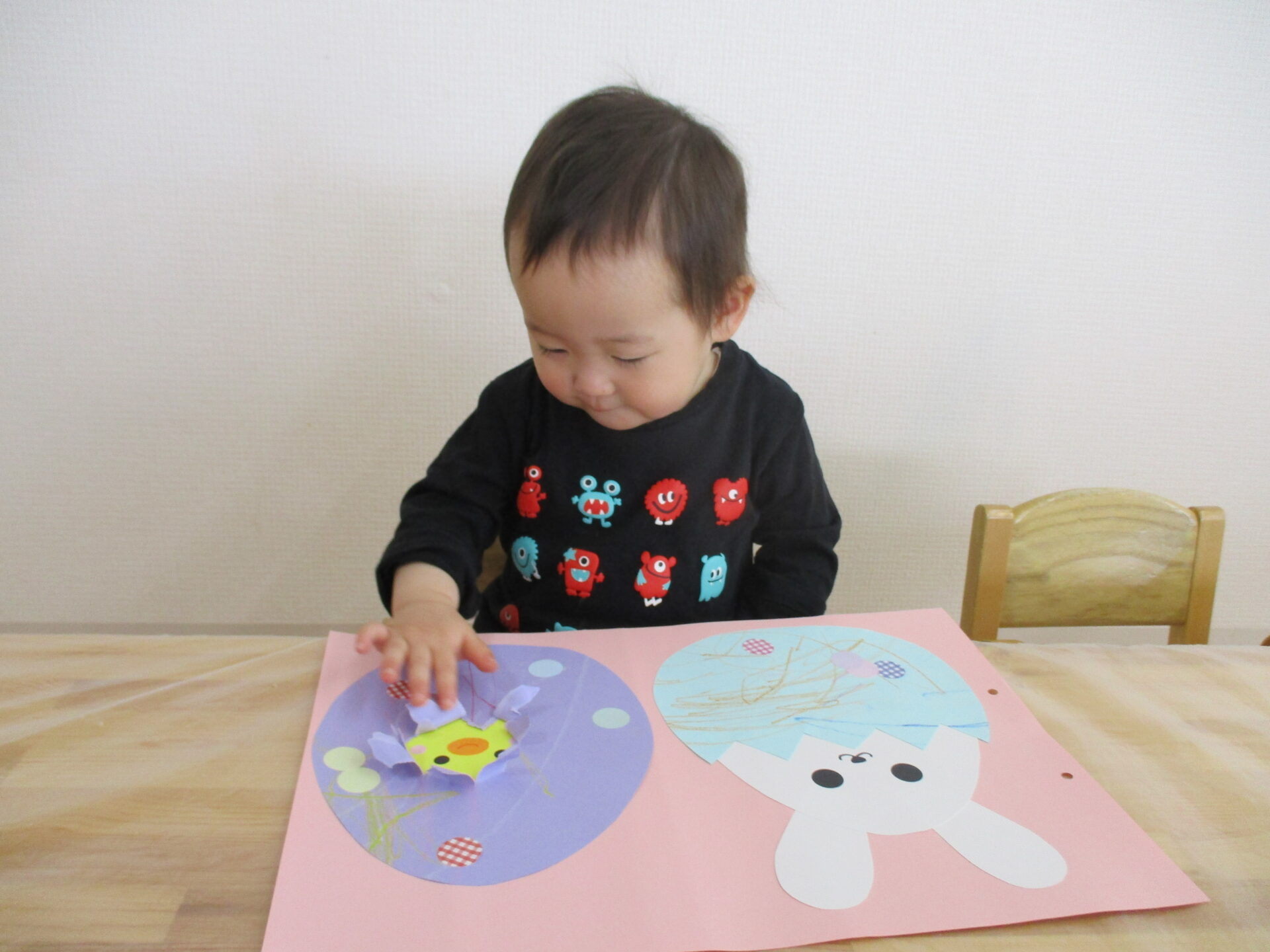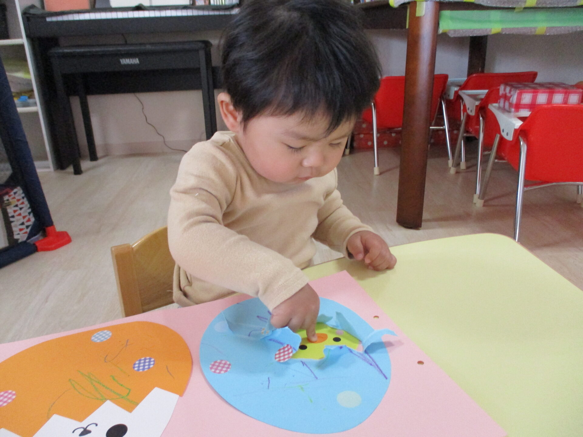 破いていいの?と恐る恐るなおともだちや出てきたひよこに驚いたり、
