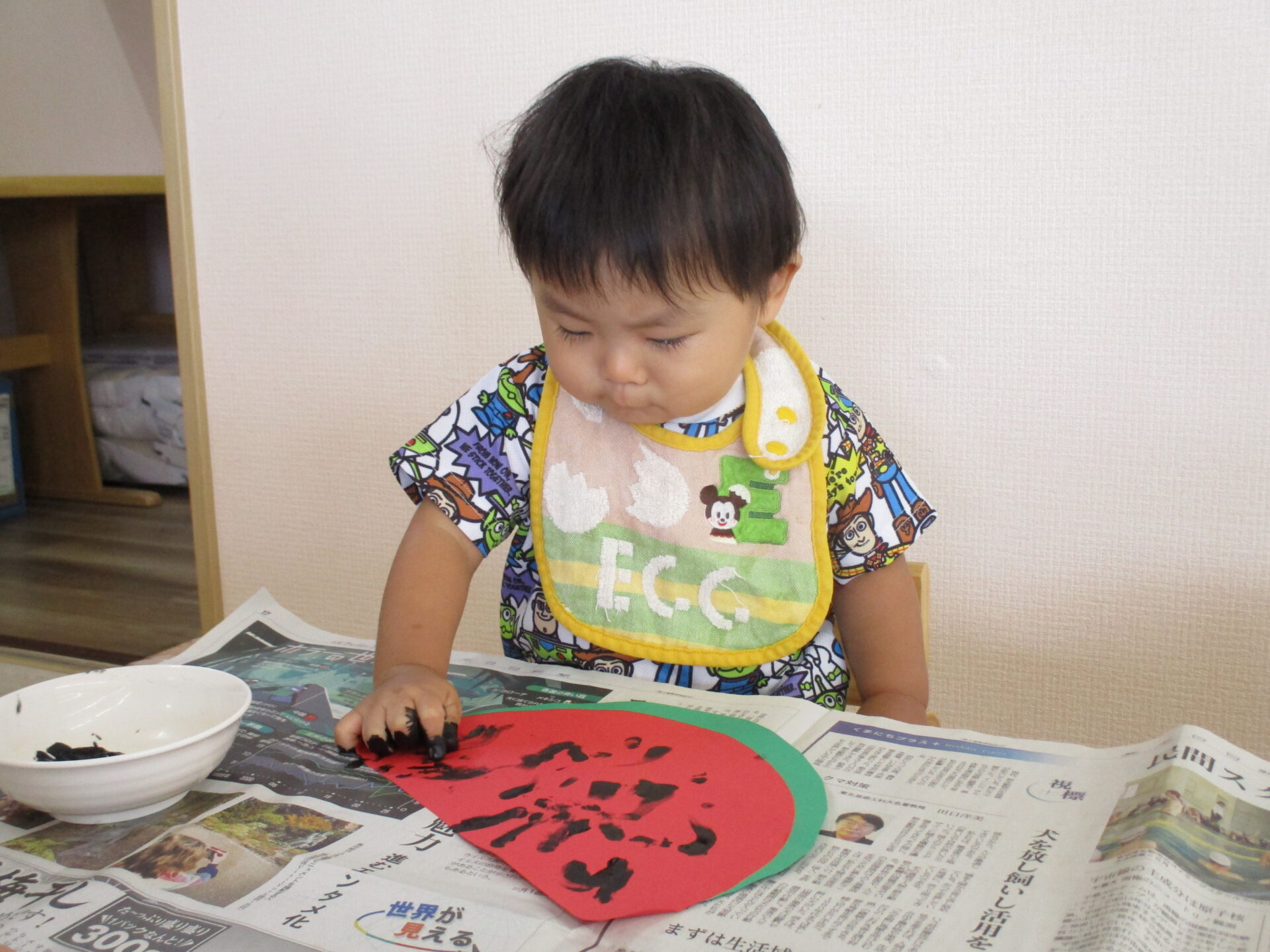 気づけば5本の指や手のひらまで真っ黒になるくらい、夢中になって楽しむお友達もいましたよ!(^^)!