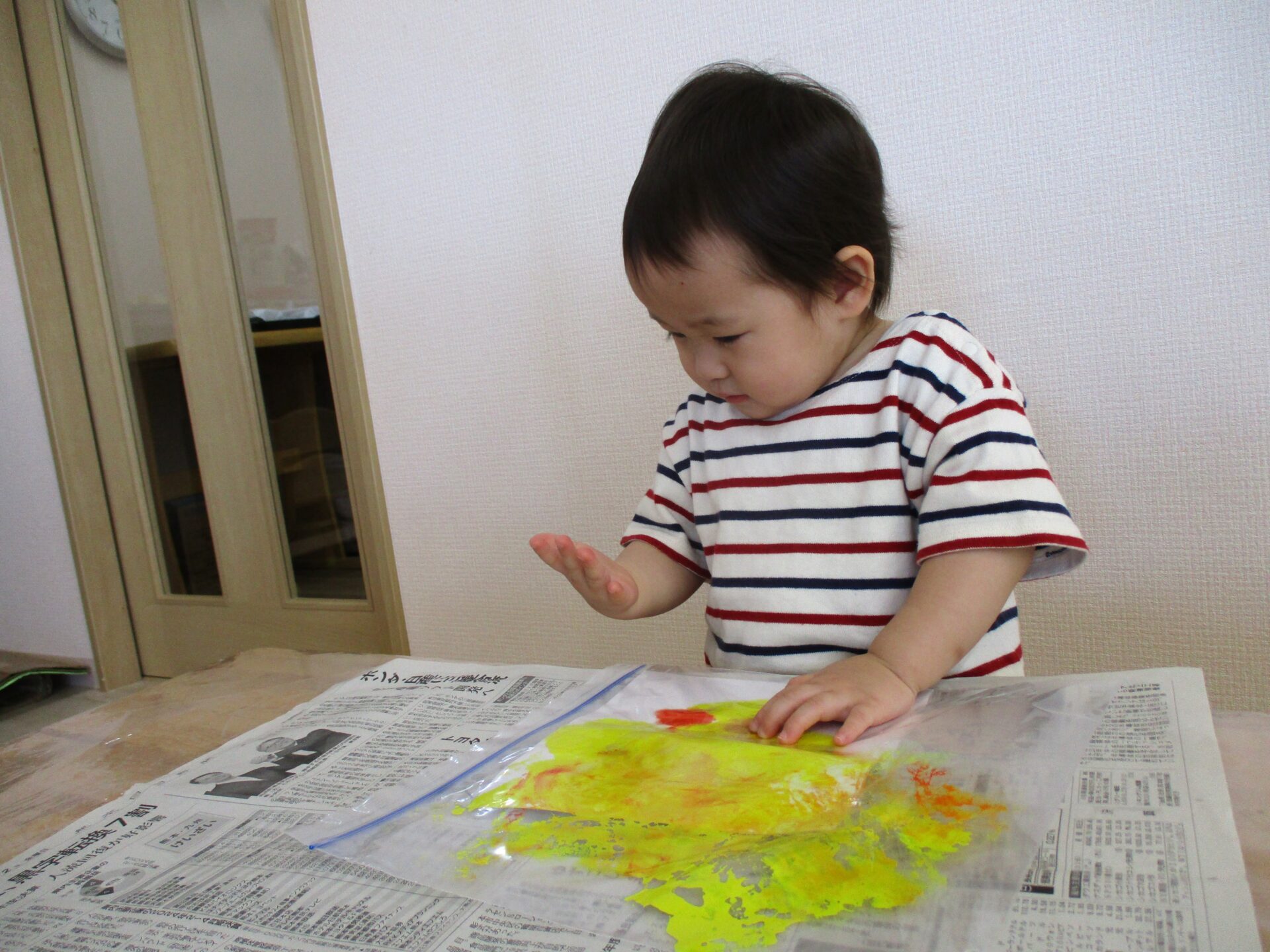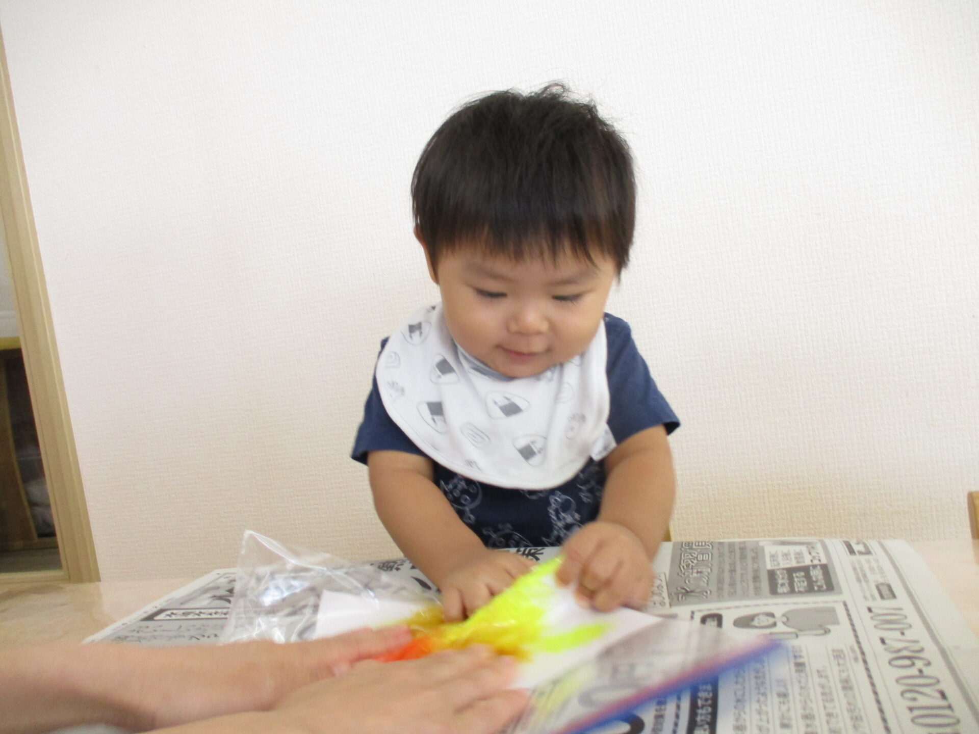 ぷにぷにとした感触や色が混ざり合う様子を楽しみました♪