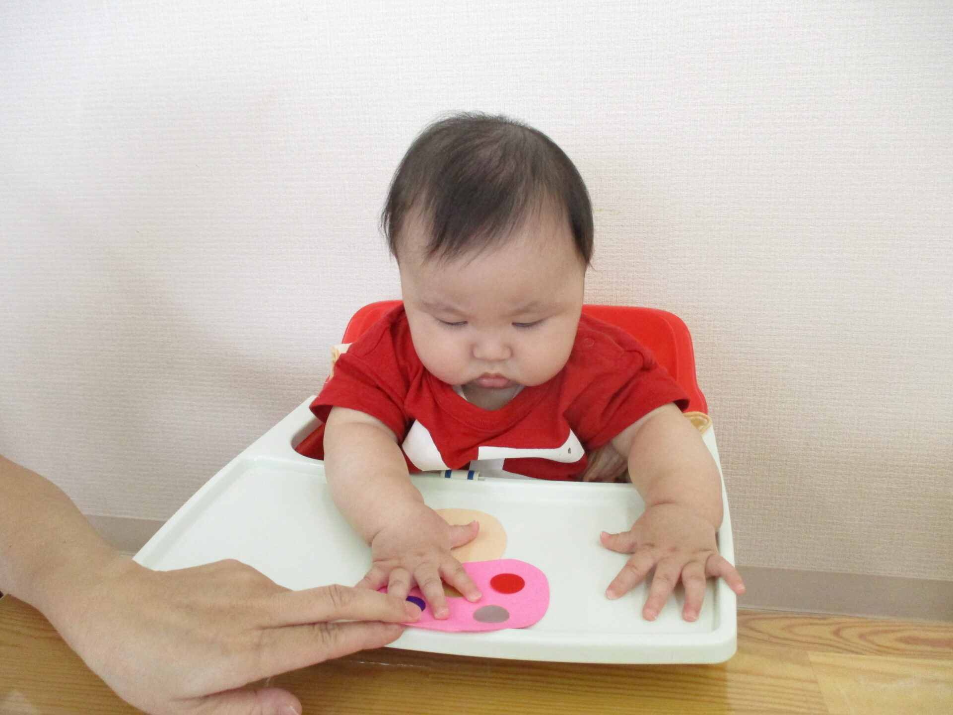 低月齢のお友だちは保育士と一緒にペタペタ貼りました。