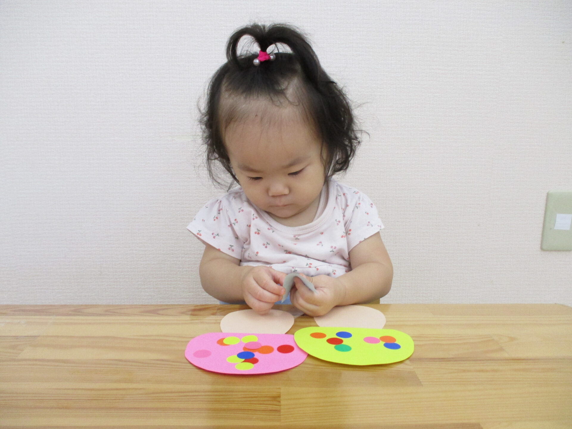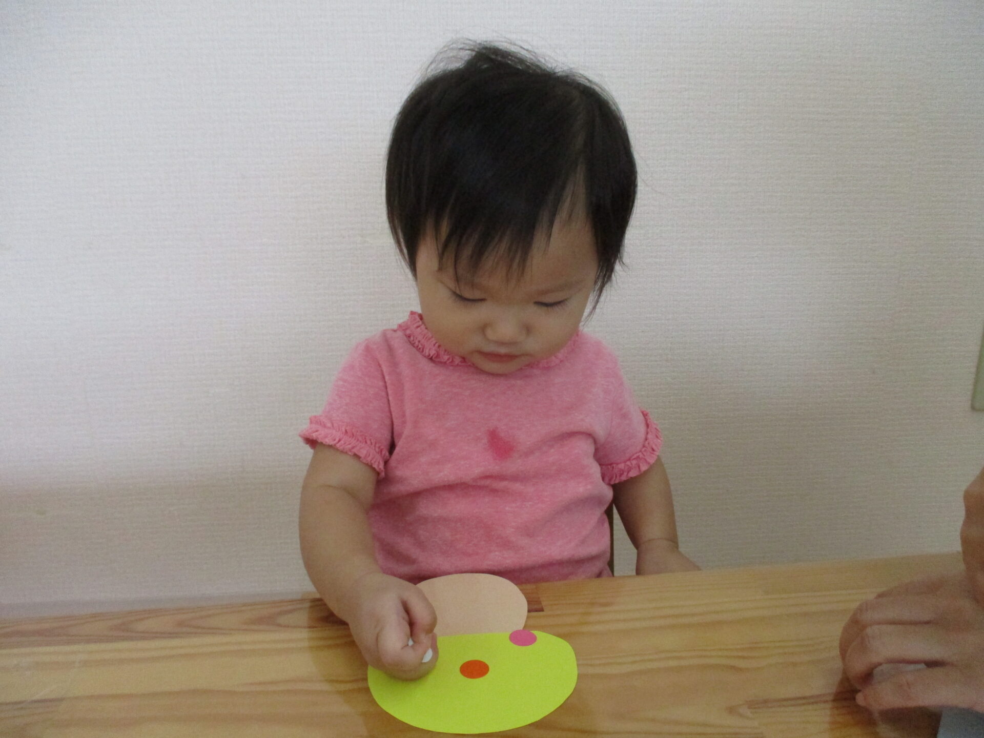 高月齢のお友だちは台紙から自らシールをはがし、画用紙に貼りました。
