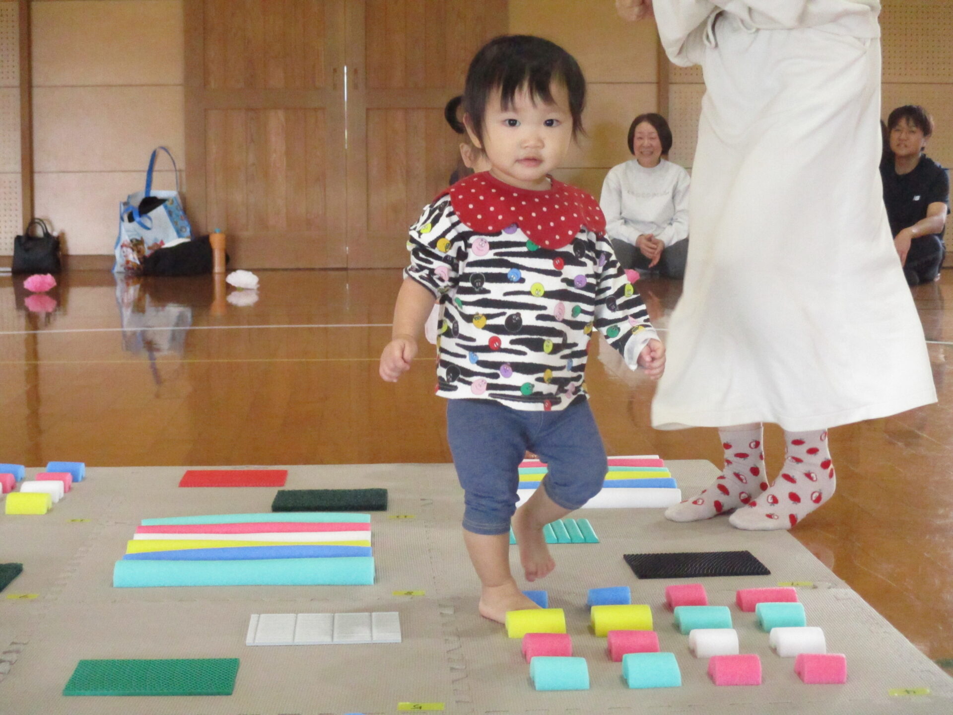 色んな感触を楽しみながらマットの上を進み、