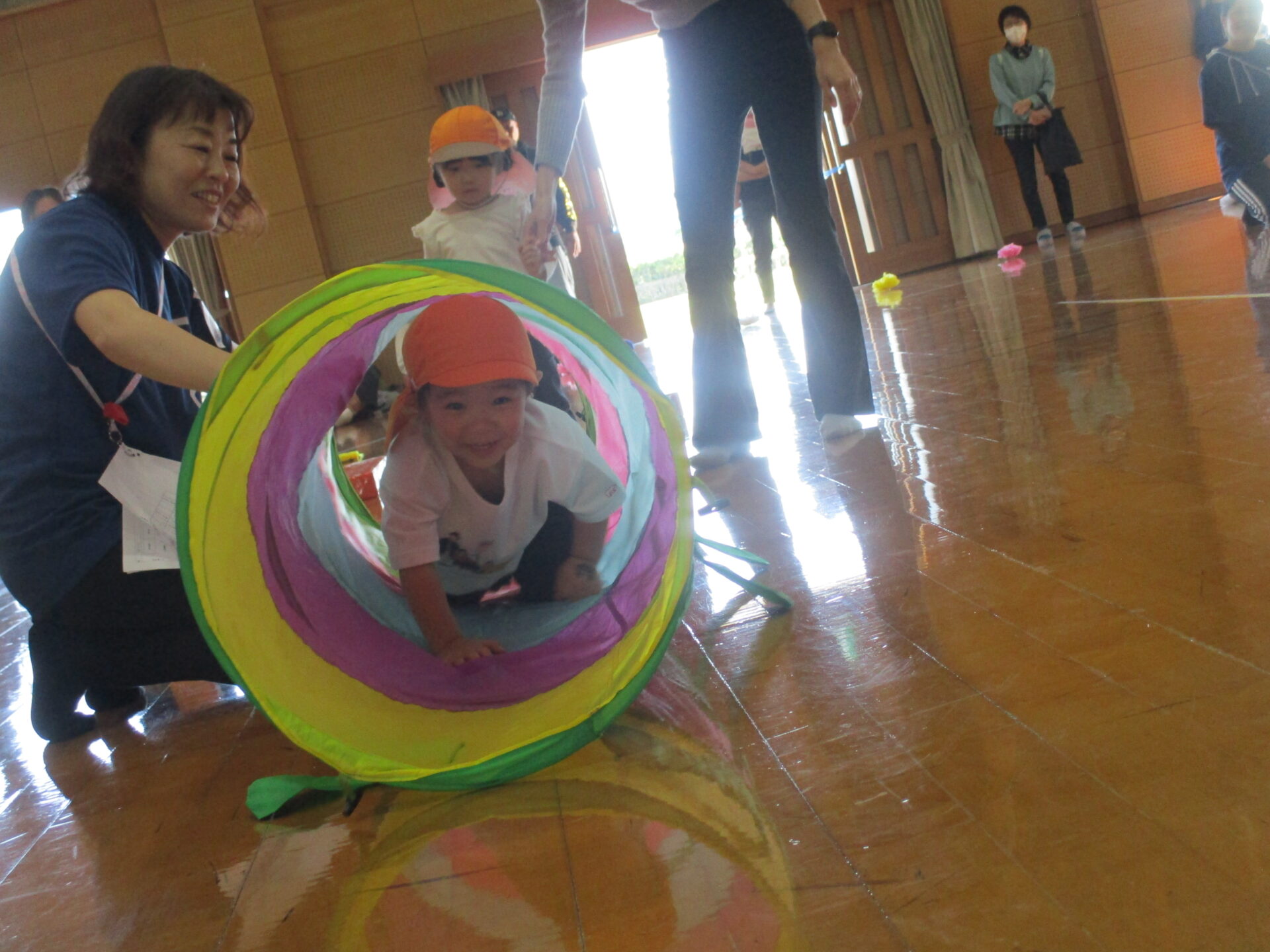 保護者の方と一緒に色んな障害物を乗り越えて