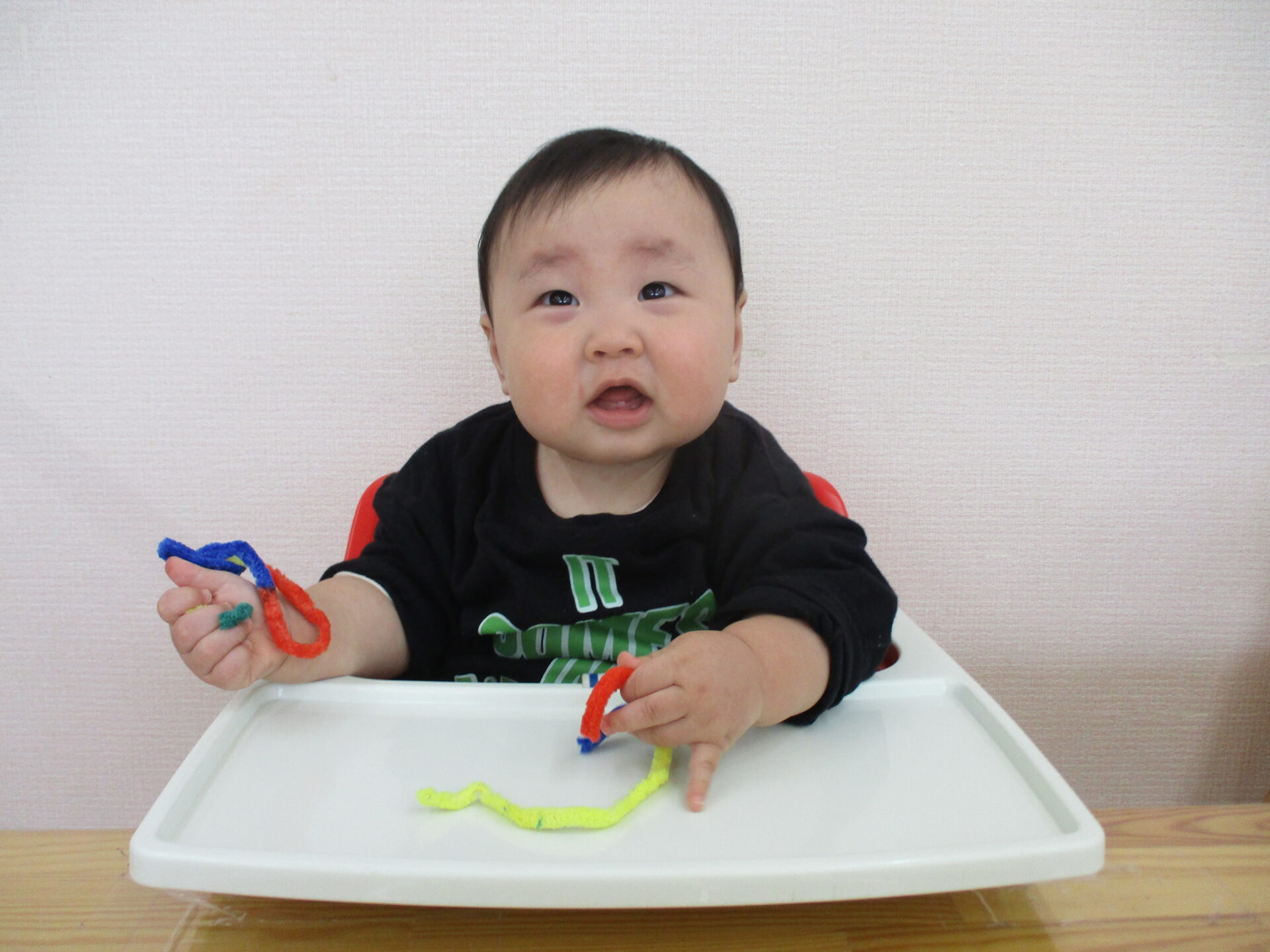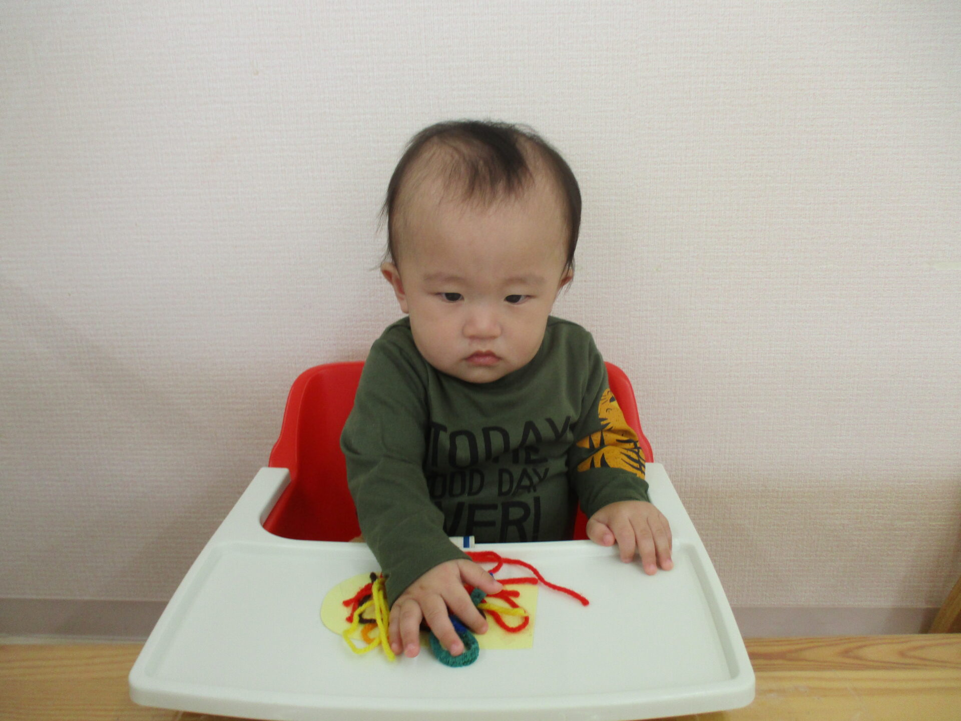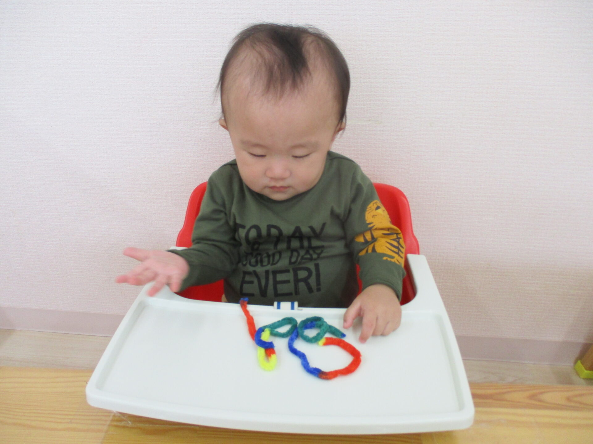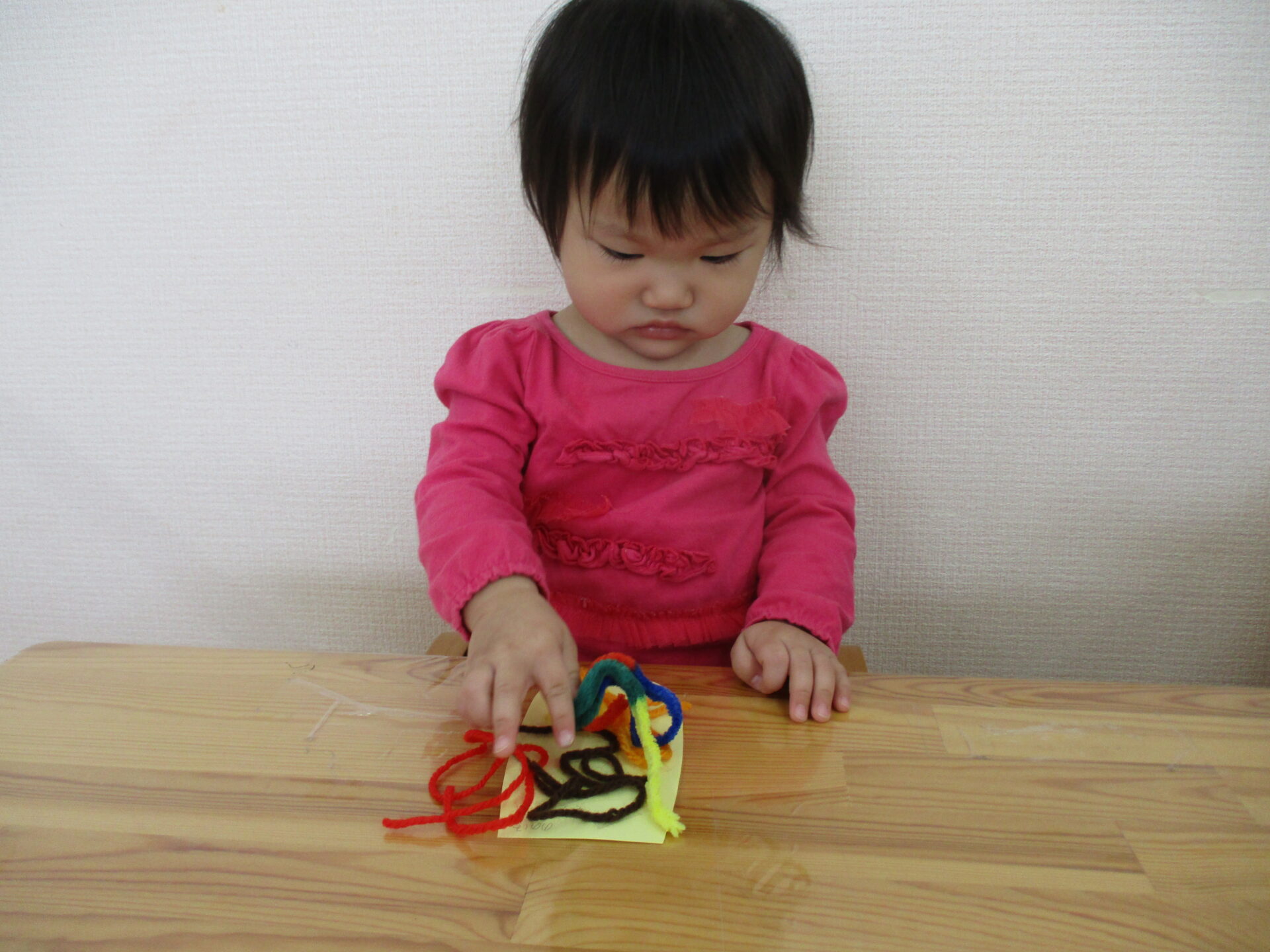 ふわふわの毛糸を気持ち良さそうに触ったり、