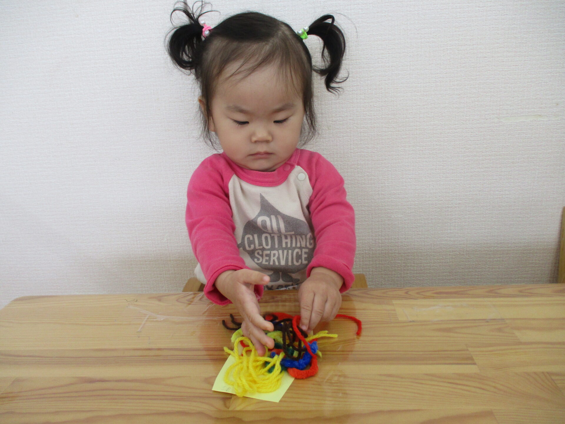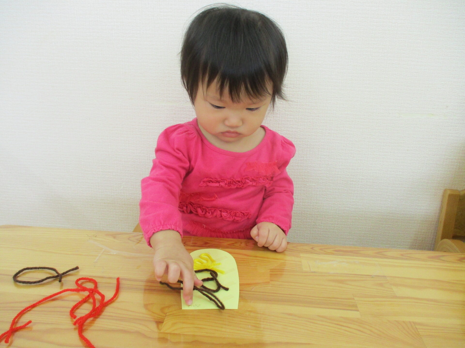 今月のひよこ組さんの制作は「みのむし」を作りました。