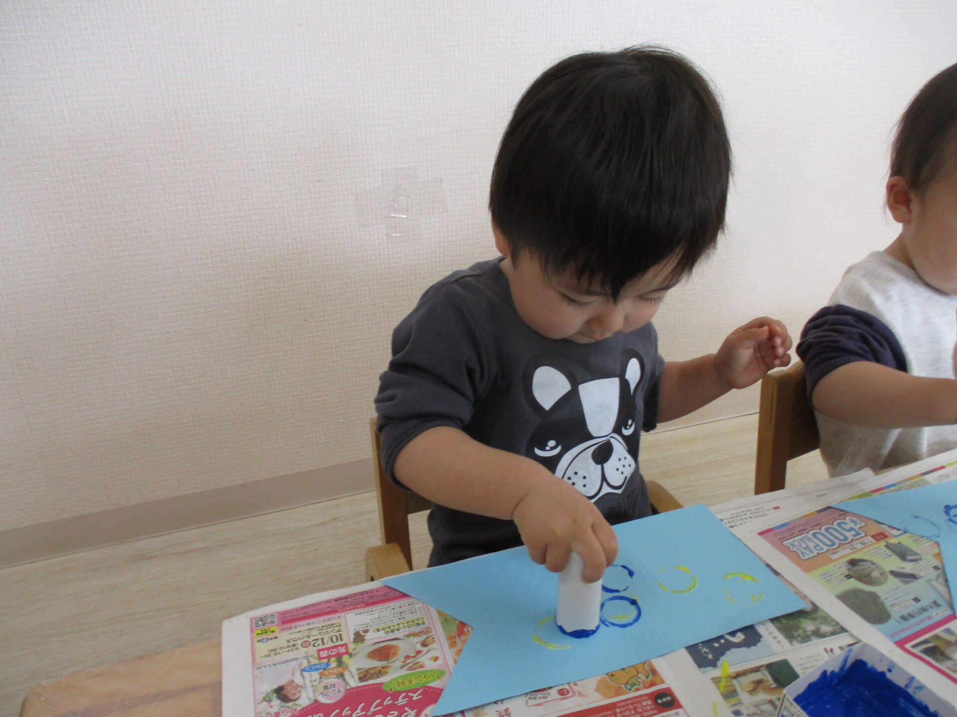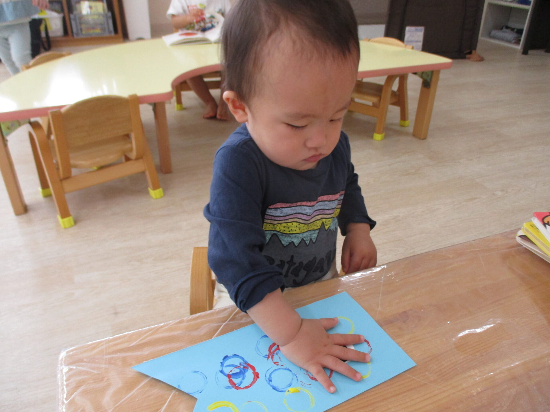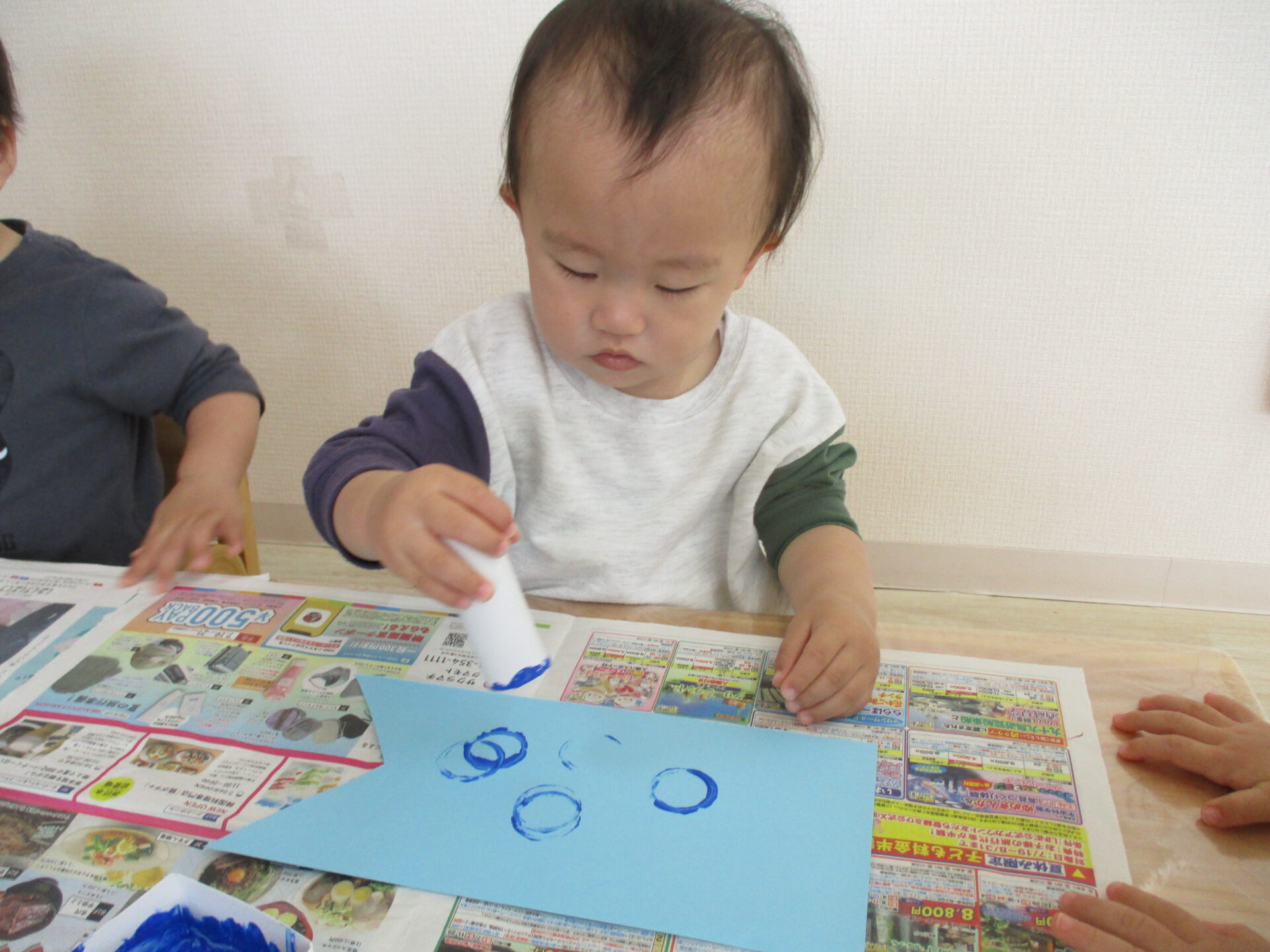 絵の具を付けて、ぎゅ~ぺったん!!と