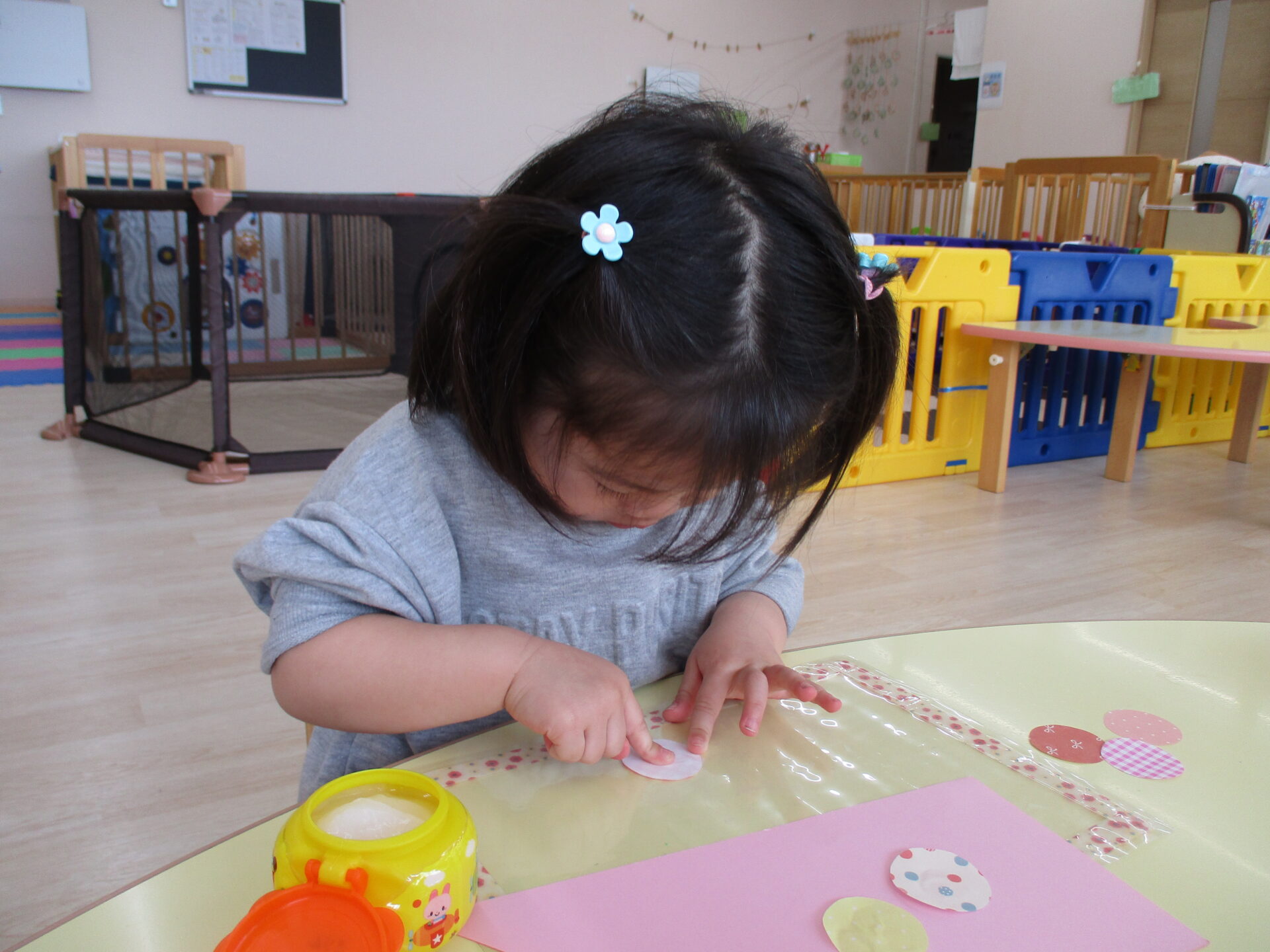 保育者とのりの使い方を一緒に確認しながら進めていきました☆