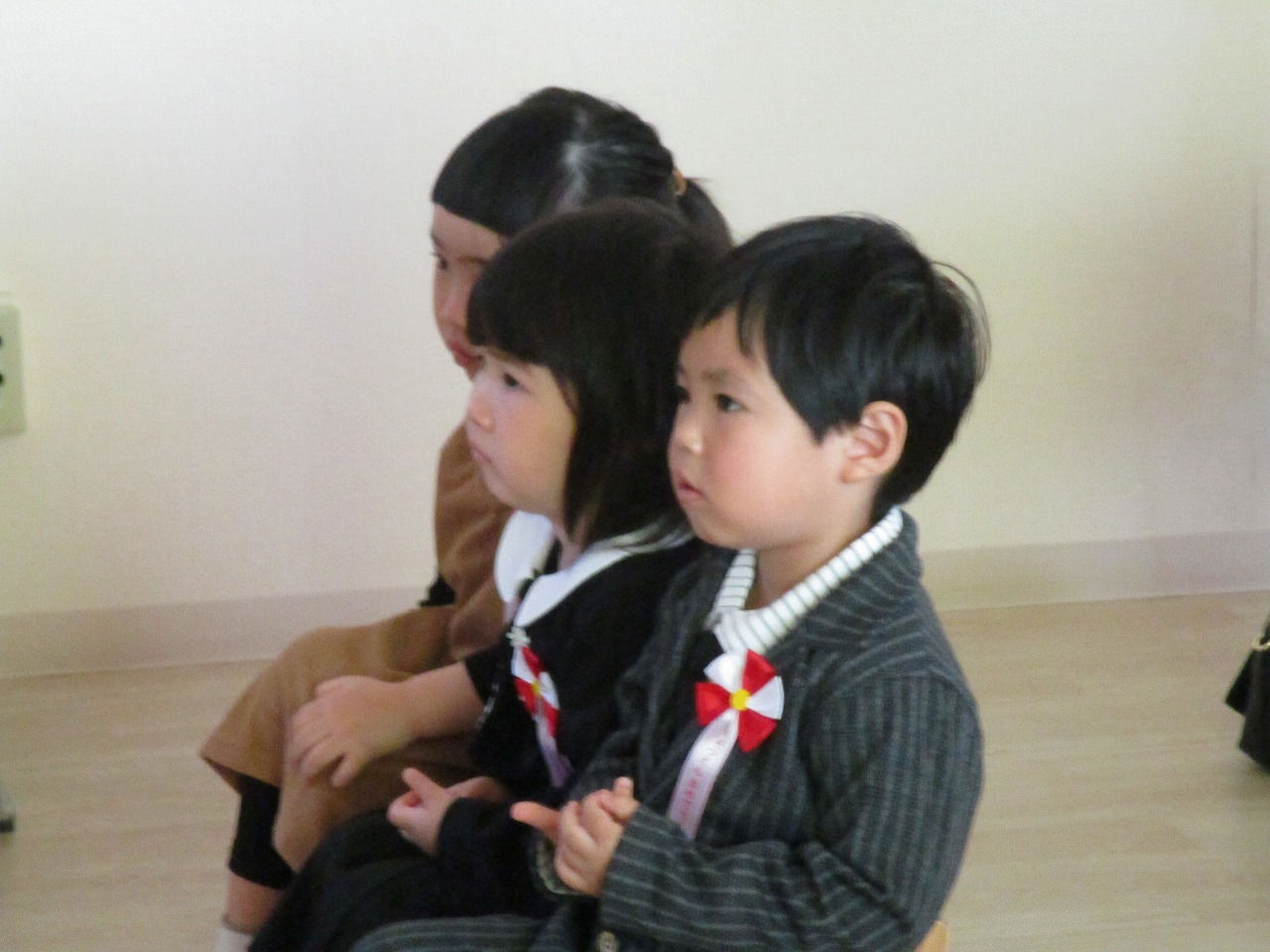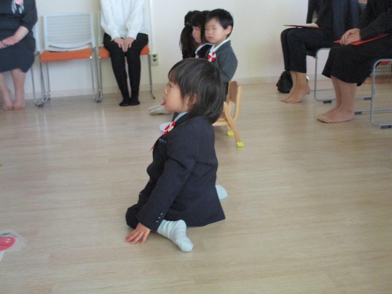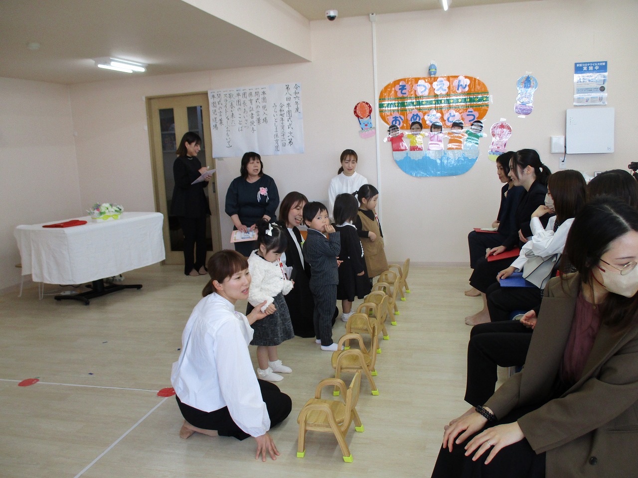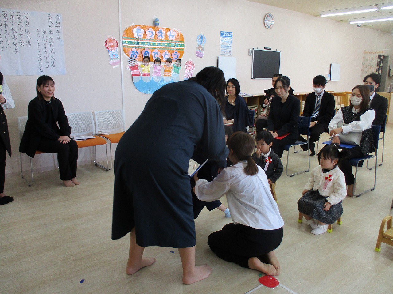 子ども達は、いつもと違う雰囲気に緊張していましたが、一人ひとりしっかりと園長先生から証書を受け取っていました。