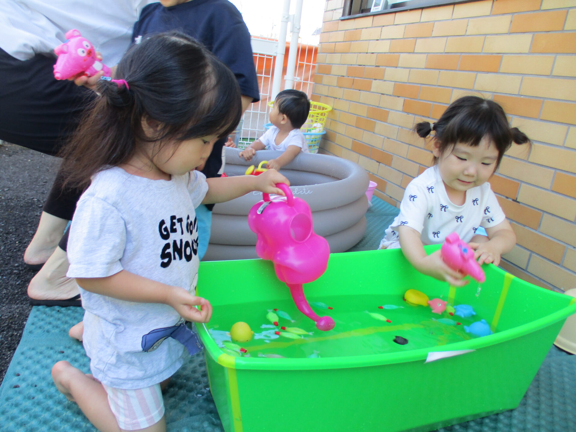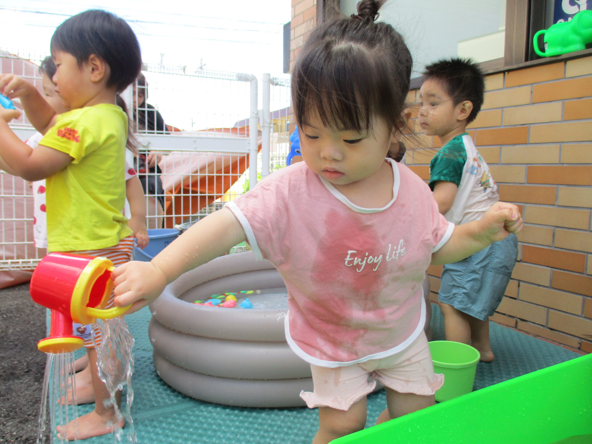 子ども達は大好きな水遊びがあるので元気いっぱいです!!