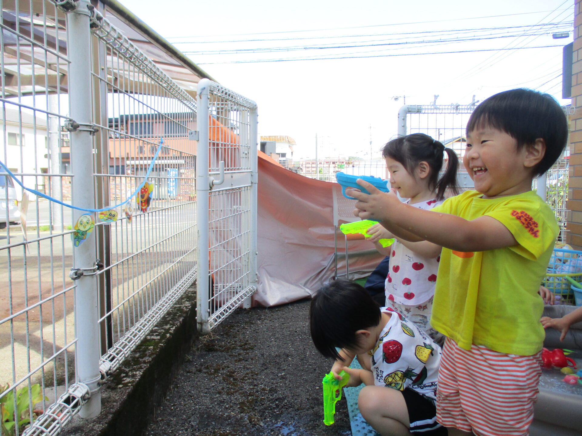 水鉄砲で的当てをしたりと