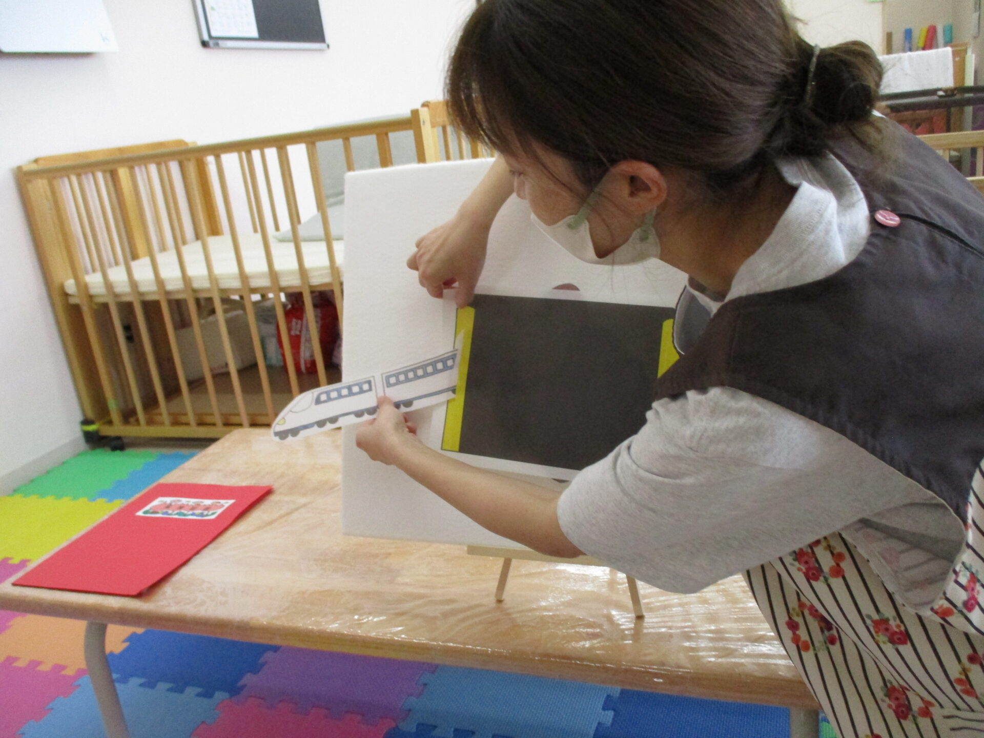 今月の出し物は、『トンネルぬけると』というパネルシアターと