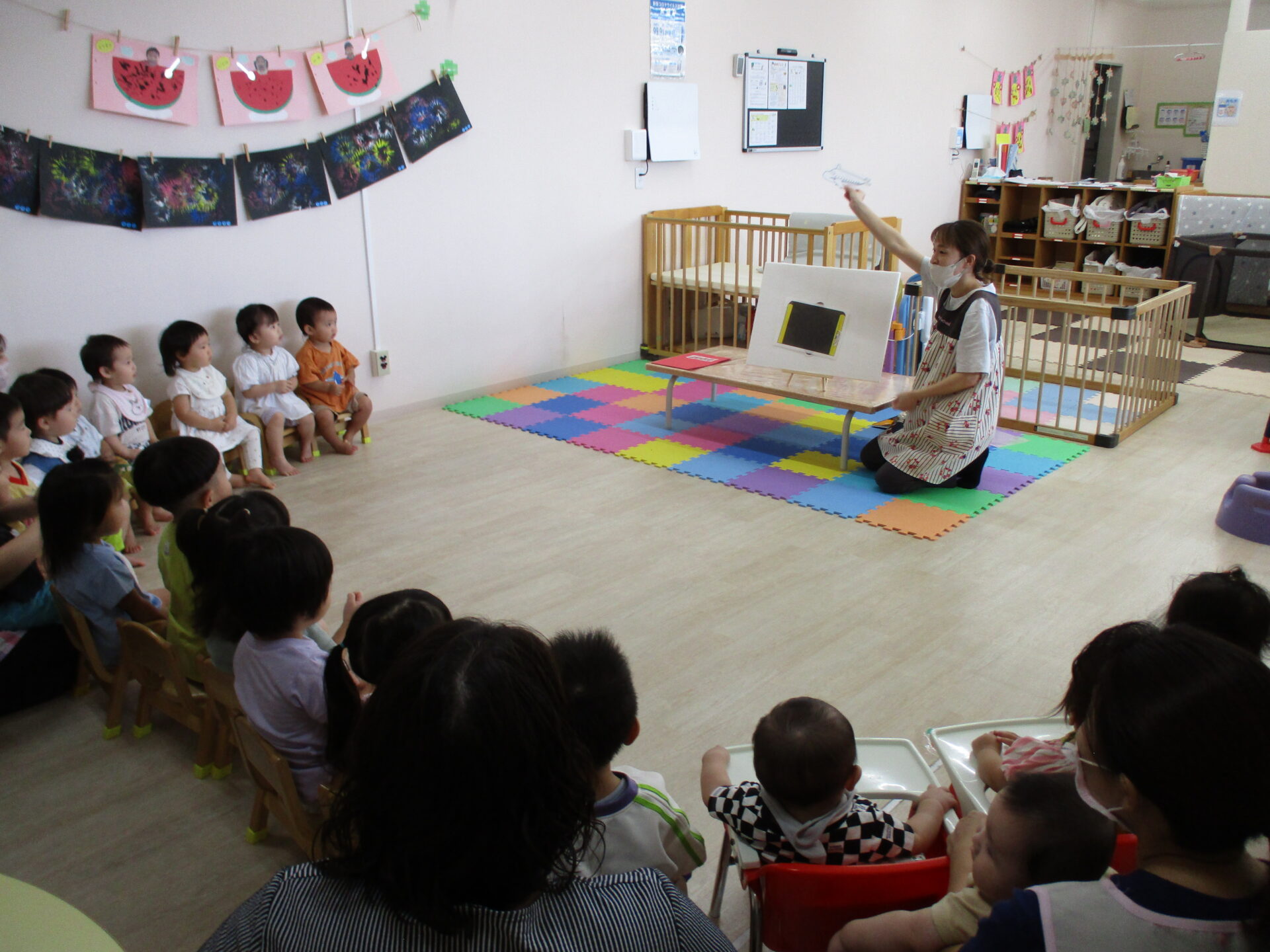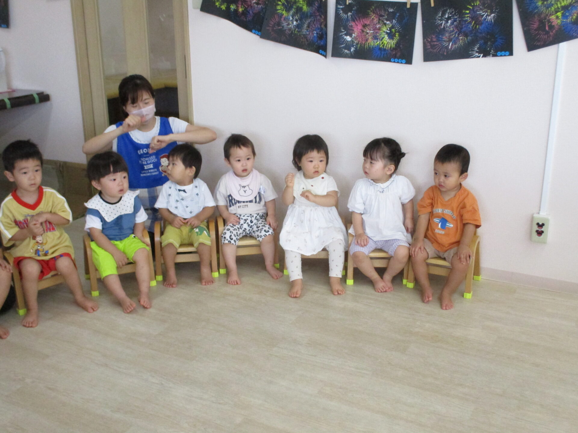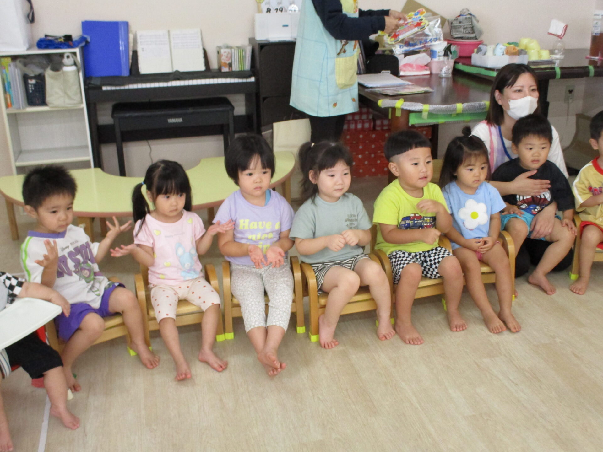 みんなで一緒にうたを歌いながら楽しんでいました。