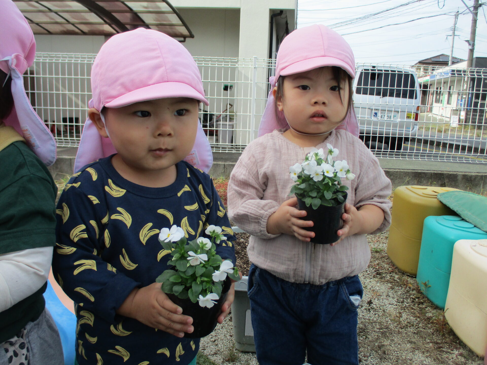 目と口の位置を先生と一緒に確認しながら描きます☺