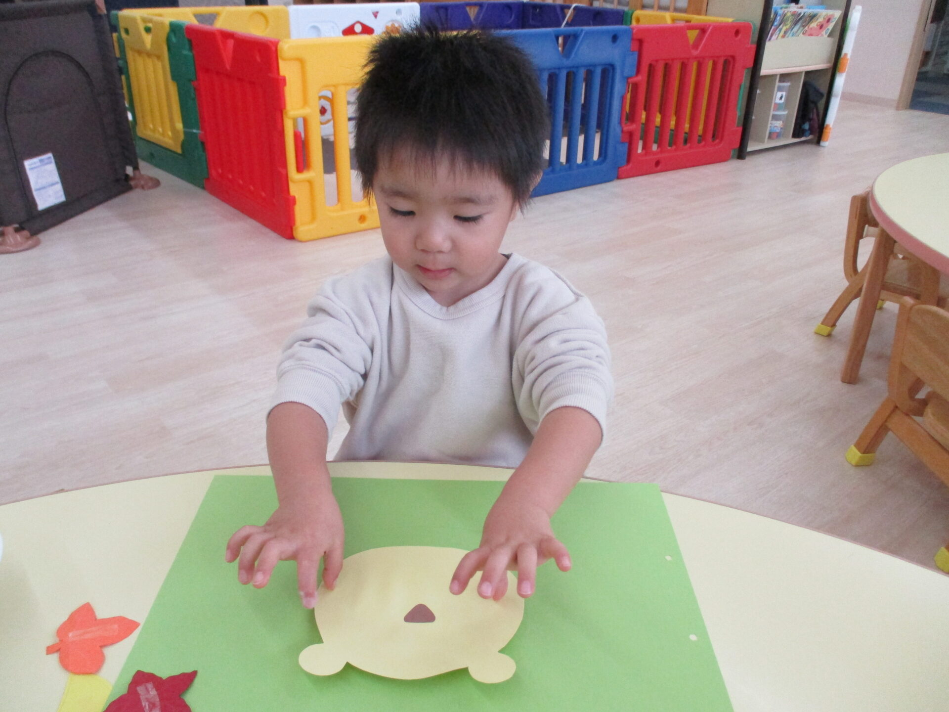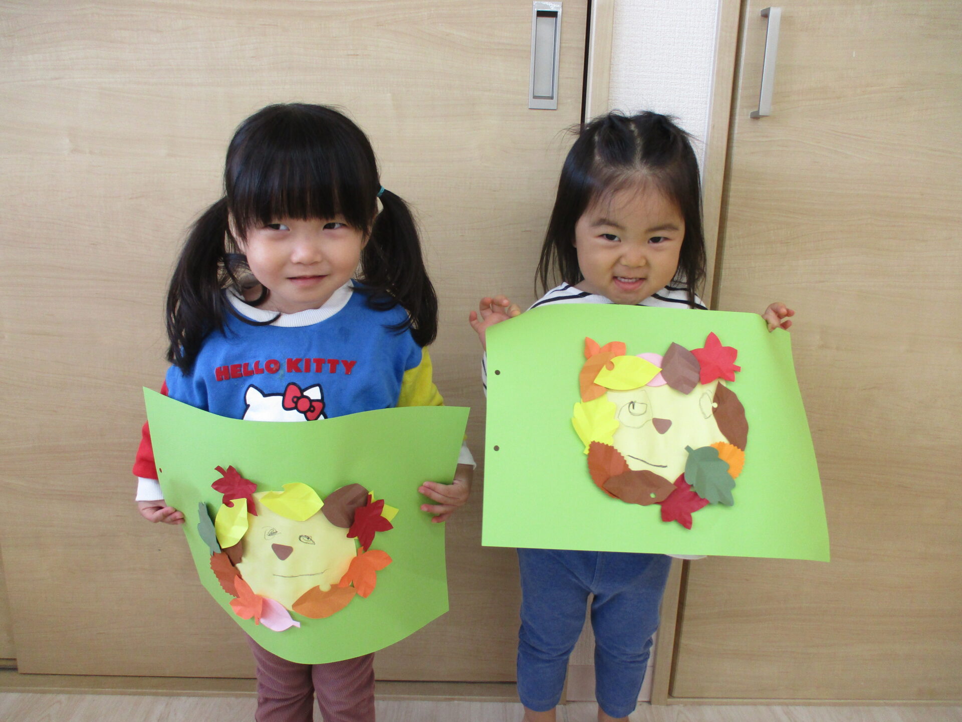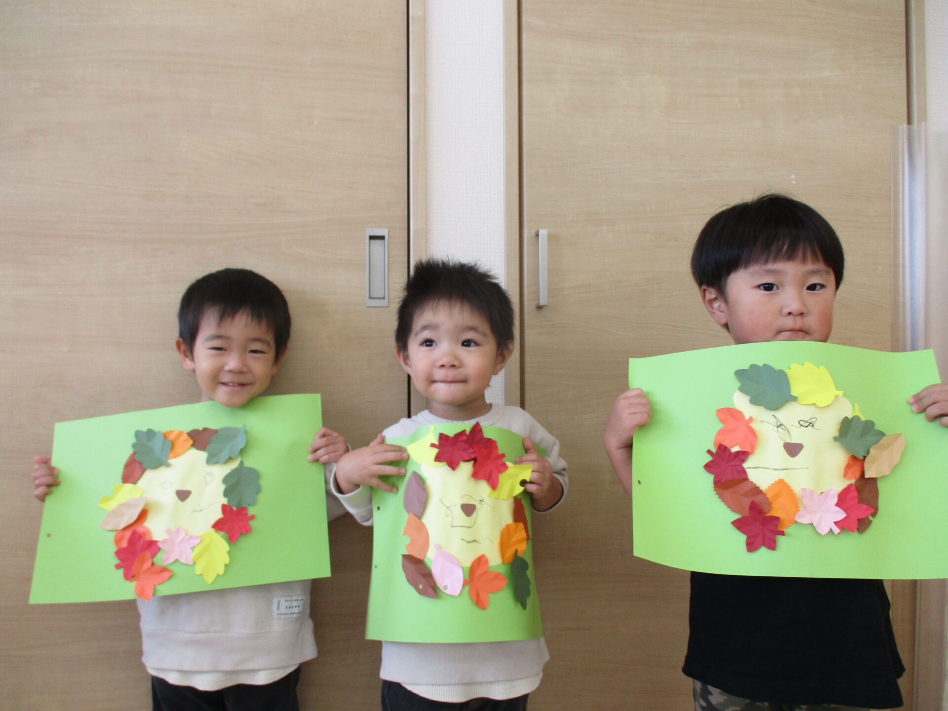 11月の制作では、落ち葉の形に切った画用紙を使って、『ライオン🦁』を作りました。
