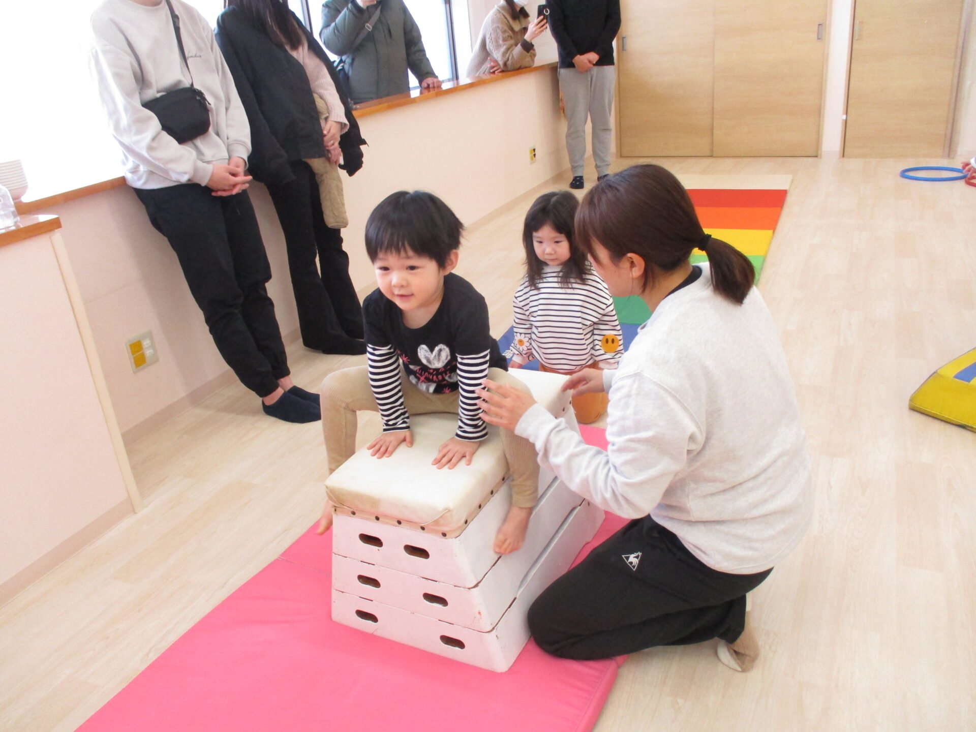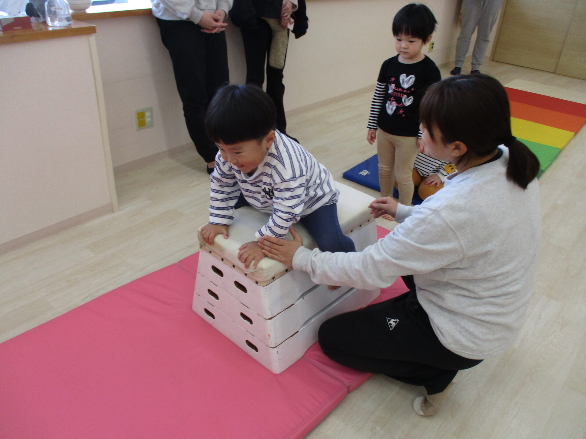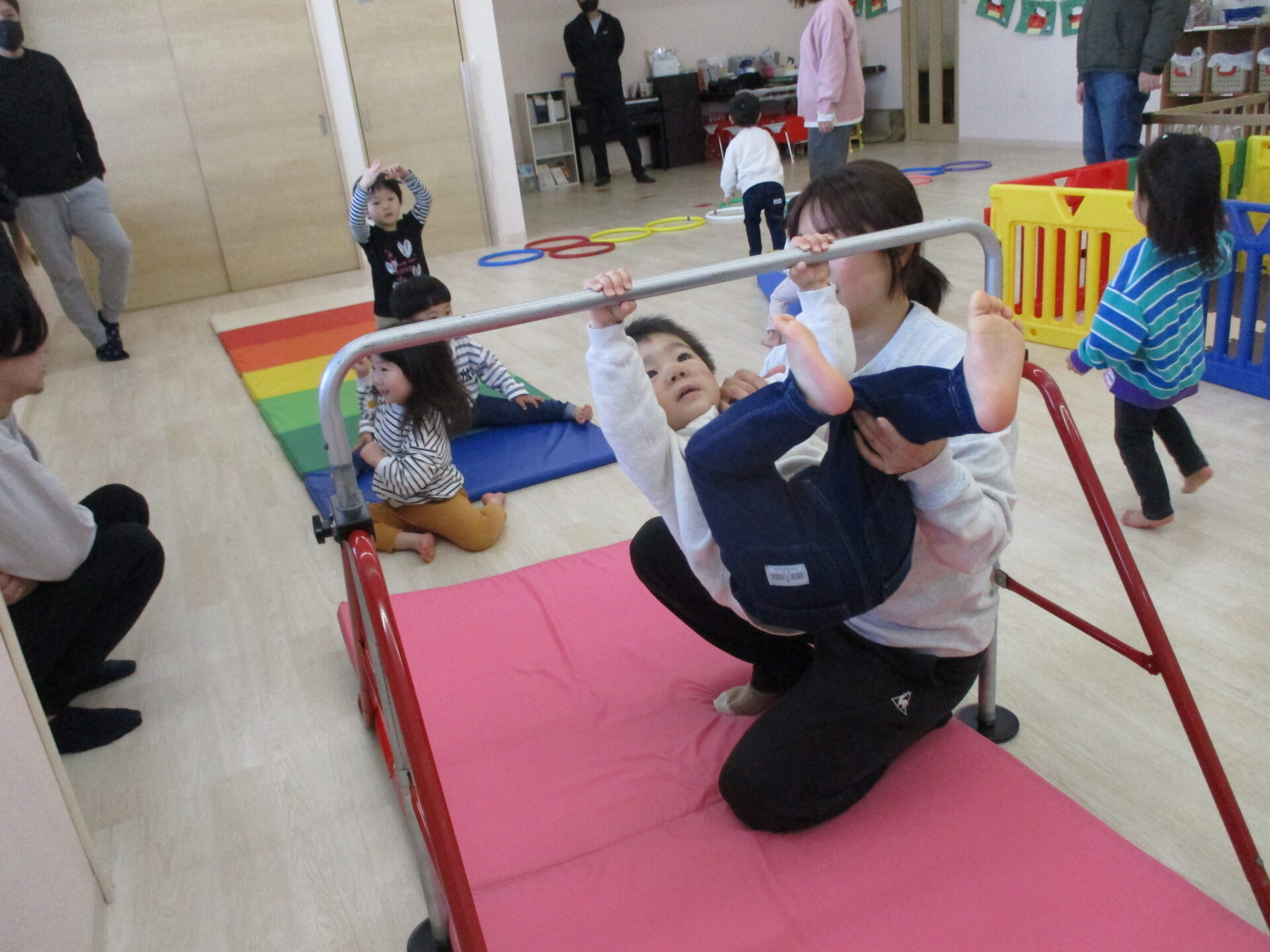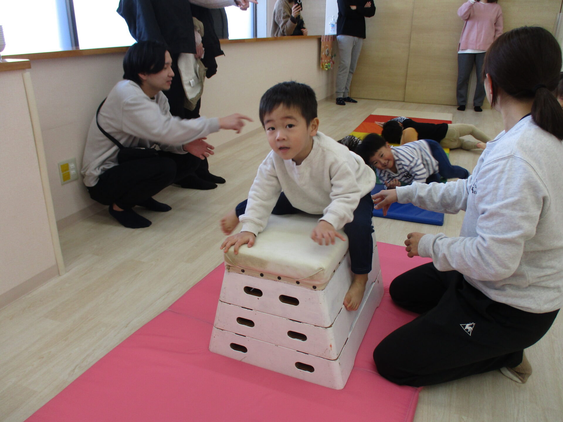 お家の方と一緒に体操をしたり、鉄棒や跳び箱にもチャレンジしてとても楽しい時間が過ごせました!!