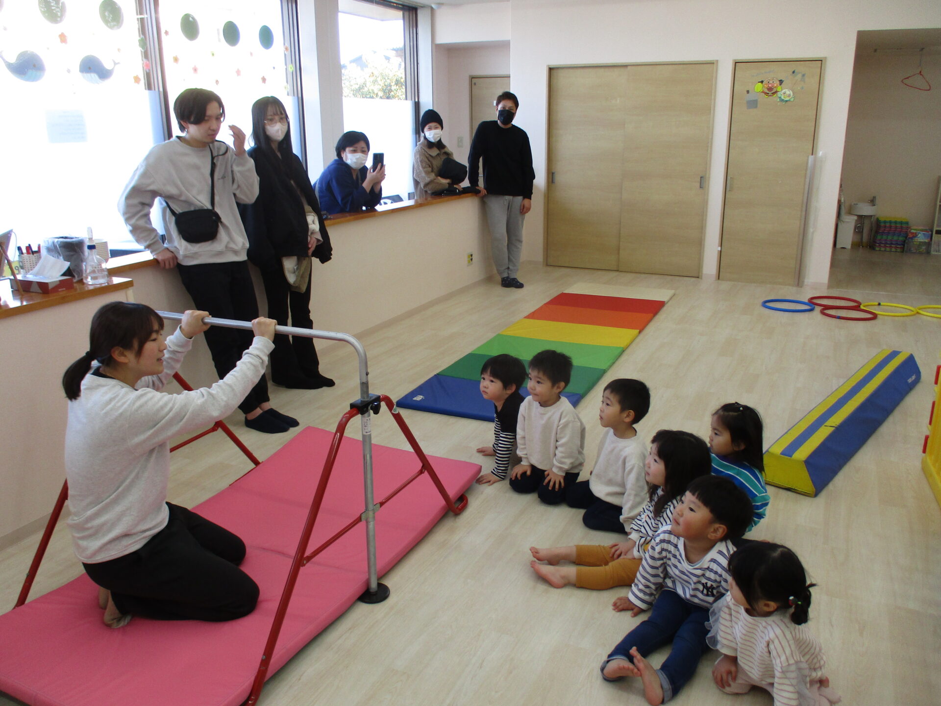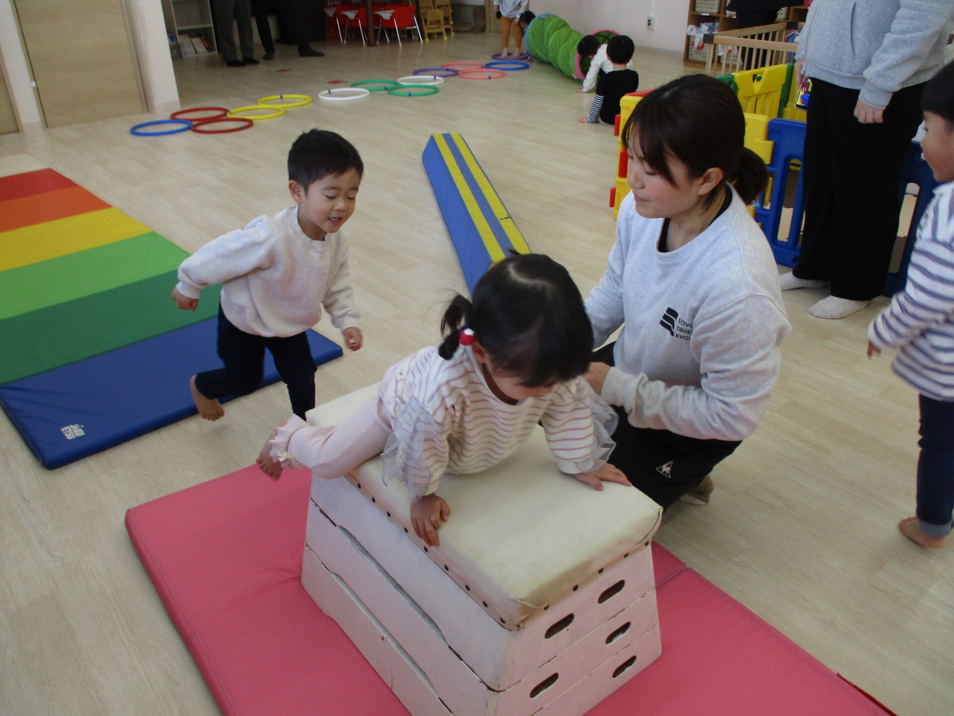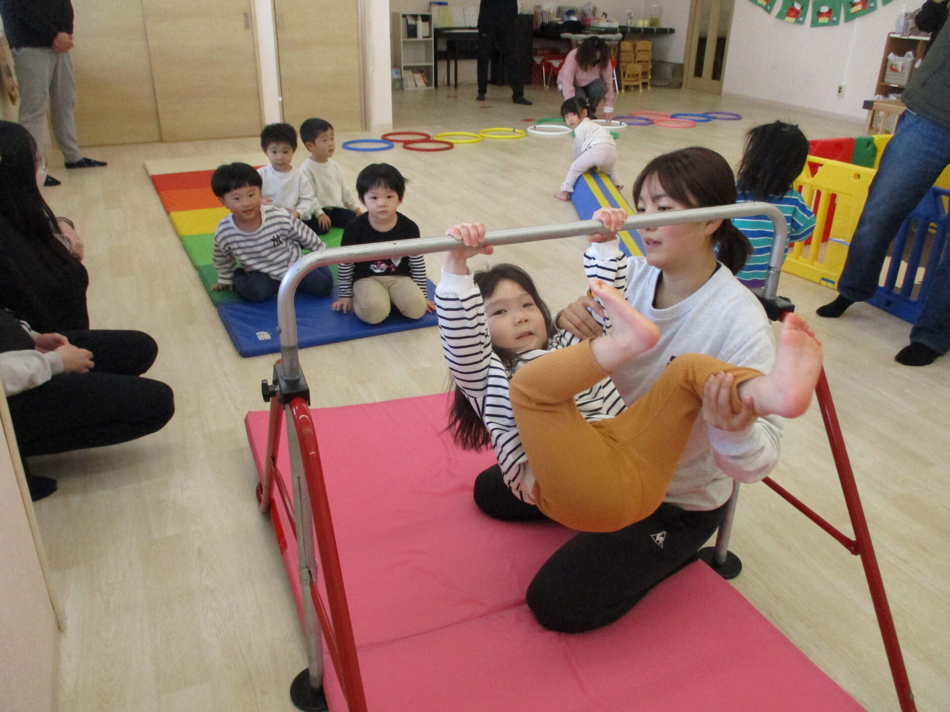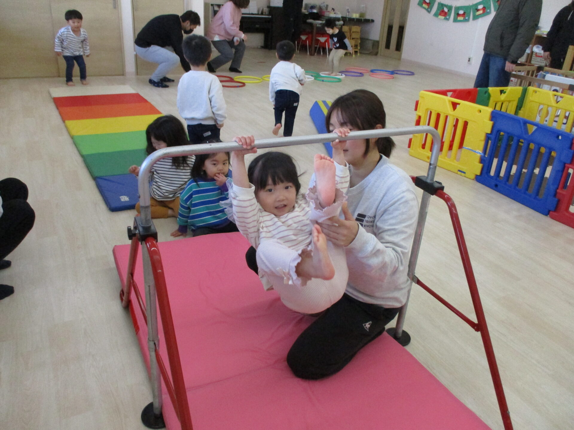 お家の方と一緒に体操をしたり、鉄棒や跳び箱にもチャレンジしてとても楽しい時間が過ごせました!!