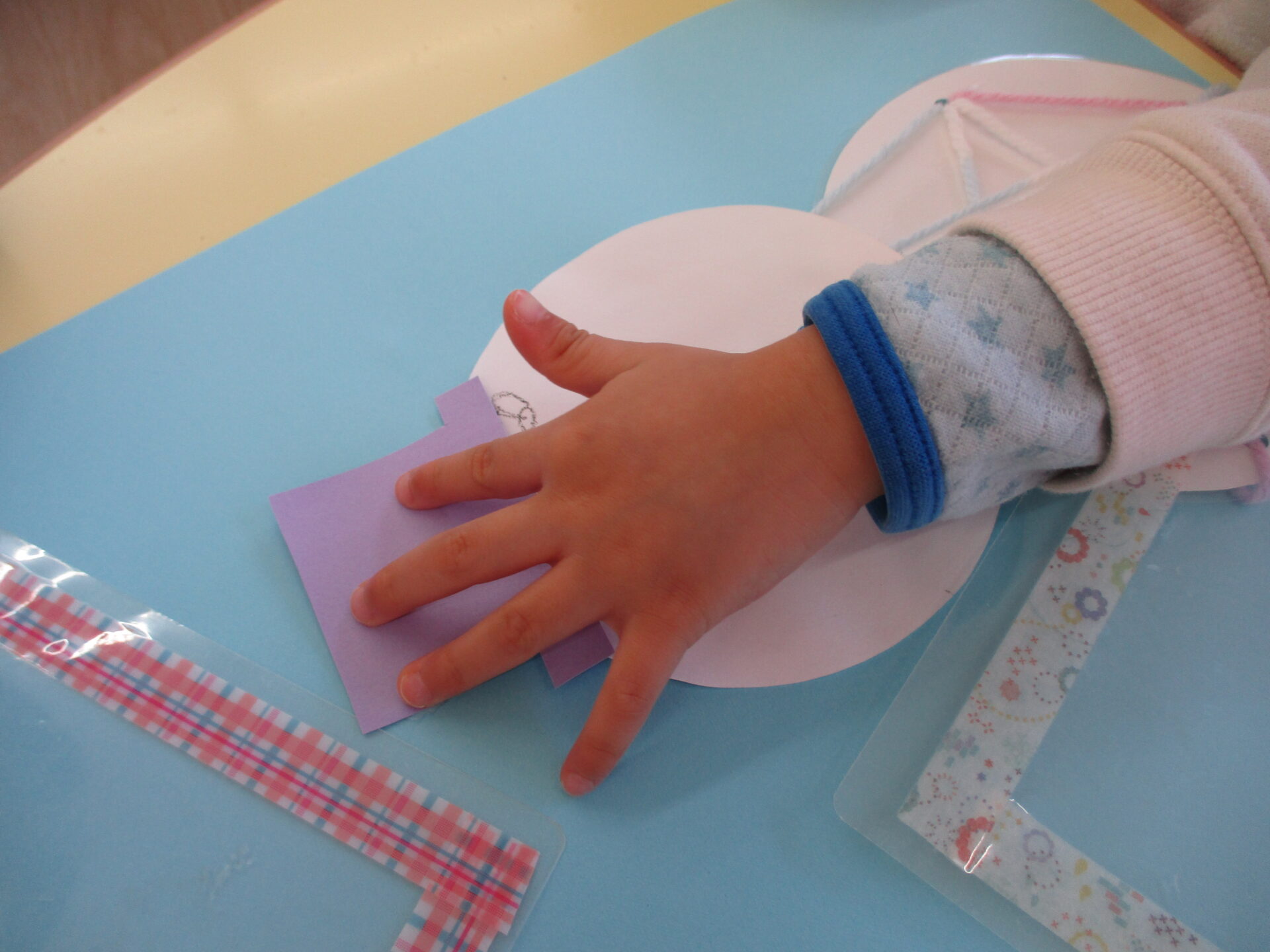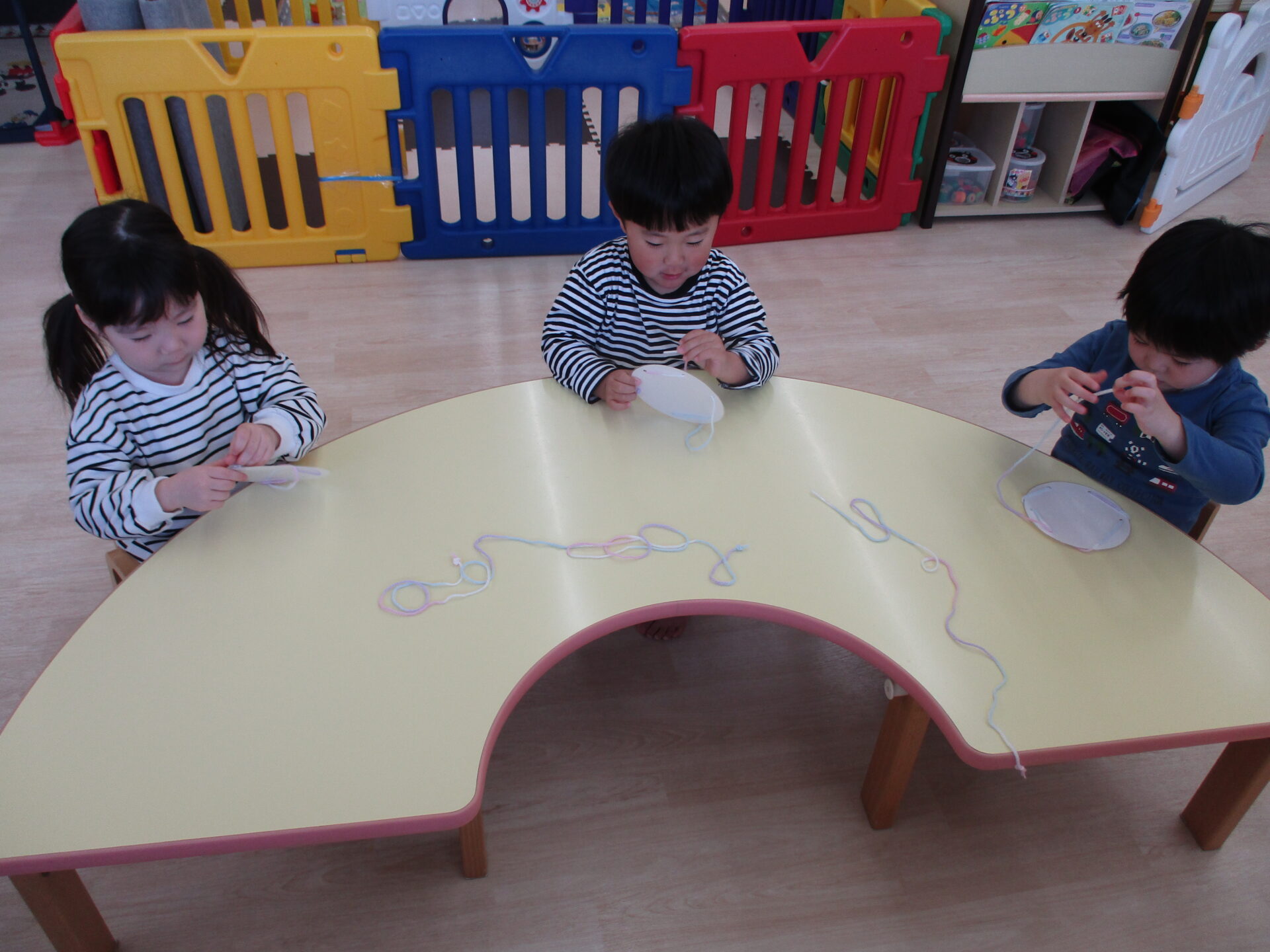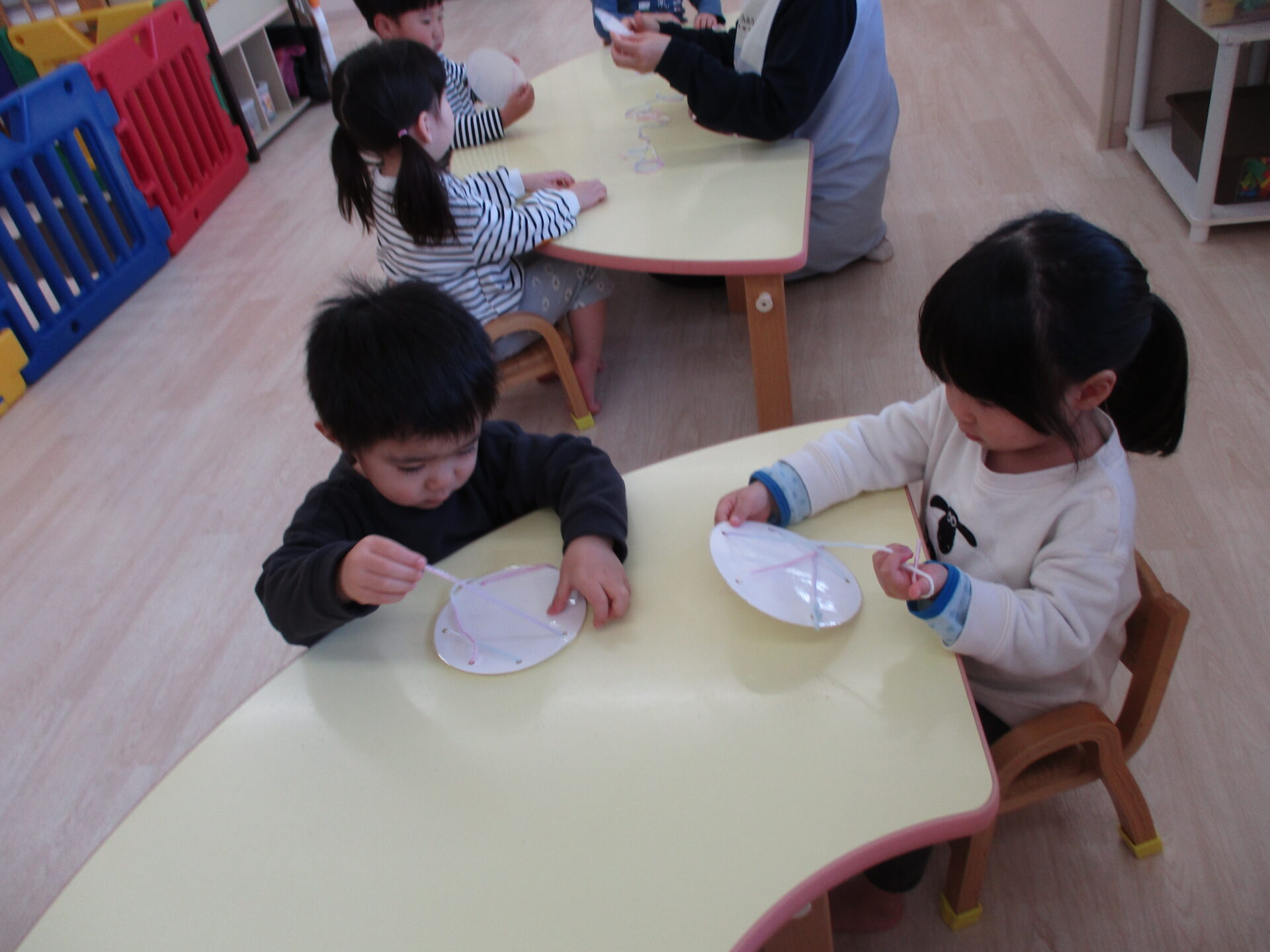 「先生、できな~い」「こうするの~?」とはじめは少し難しかったようですが、コツをつかむと上手に飾ることができました。
