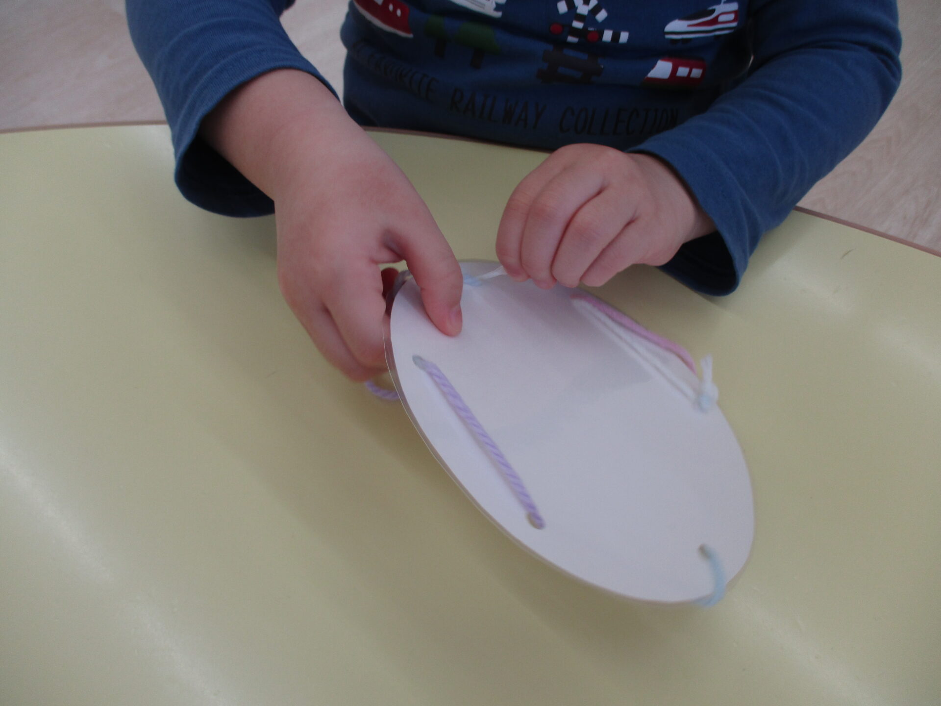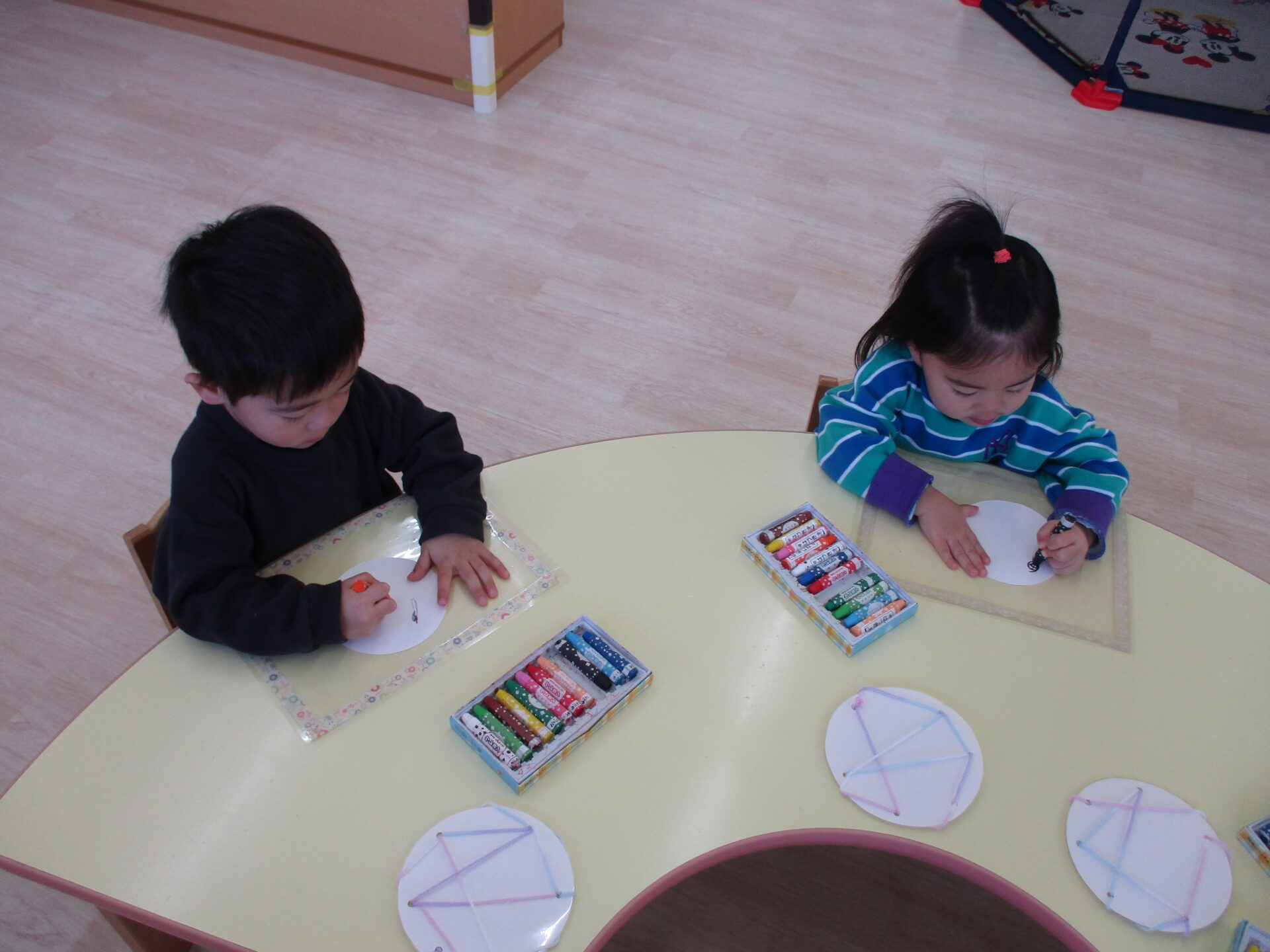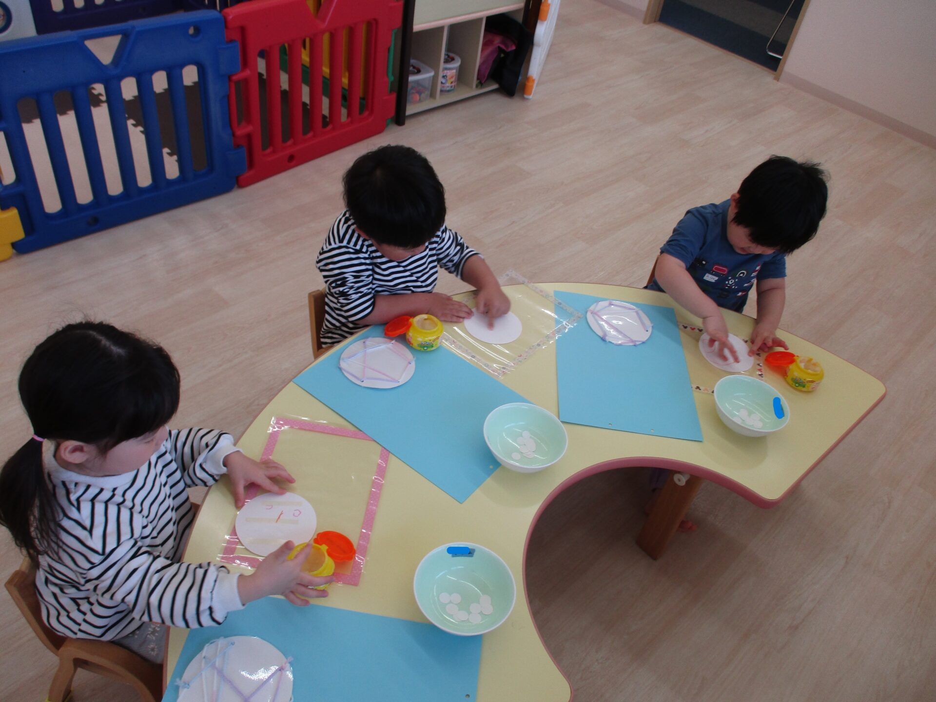 「先生、できな~い」「こうするの~?」とはじめは少し難しかったようですが、コツをつかむと上手に飾ることができました。