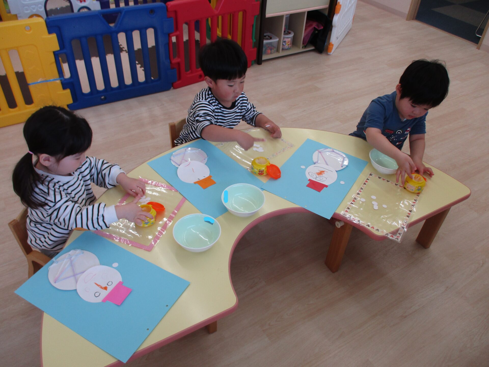 子ども達に「今日は、雪だるまの制作をしよう」と言うと大喜び🤭