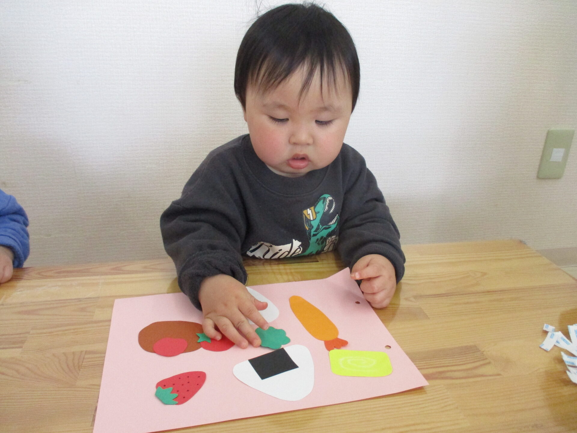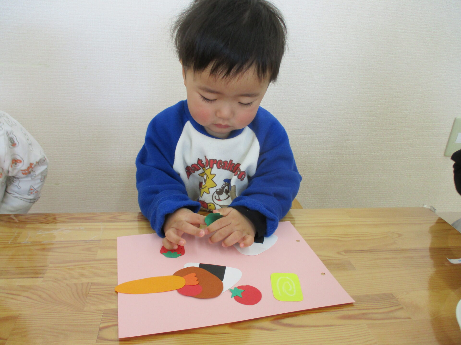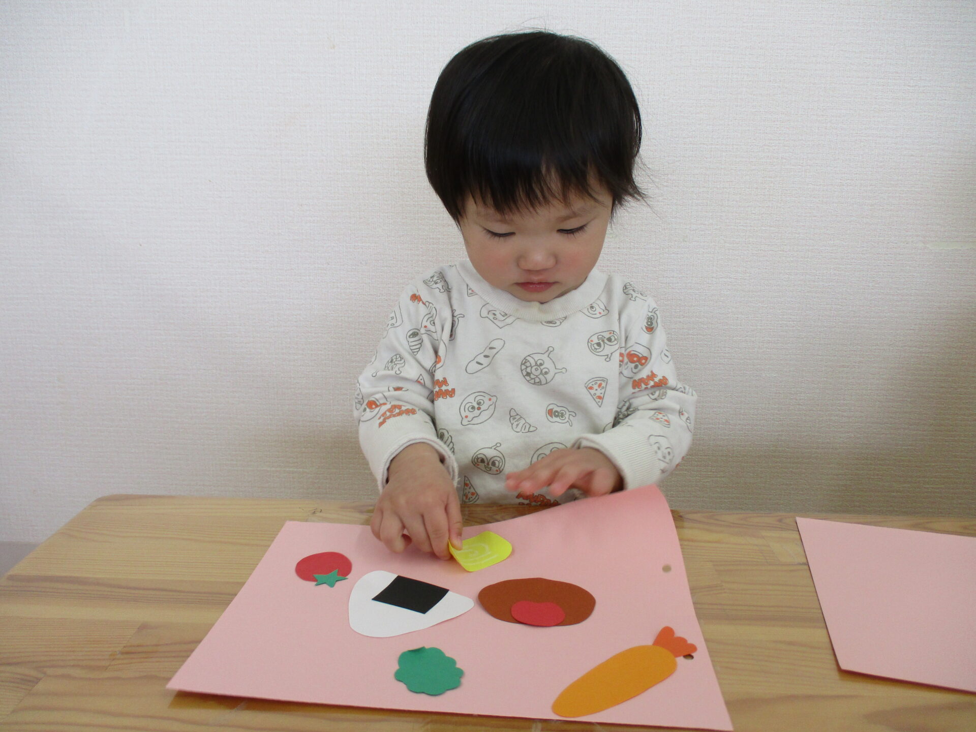 具材がくっつかないように貼ったり、どこに入れようかな~と悩みながら貼ったり、